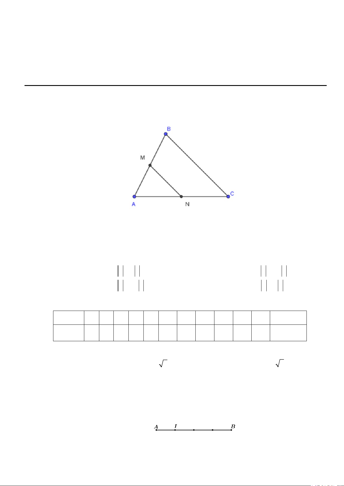 Câu 1. Cho tam giác ABC như hình vẽ. M , N lần lượt là trung điểm của AB, AC . Hỏi cặp vectơ nào sau đây cùng hướng? A. ; MA MB