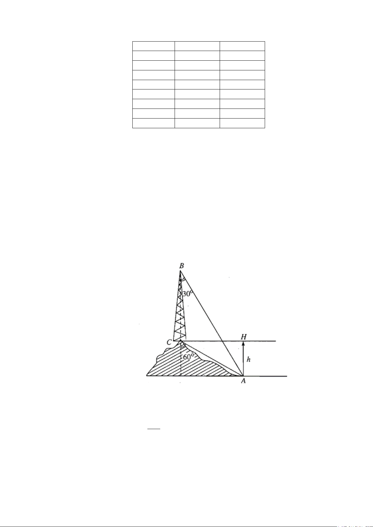 Câu 2. Trên ngọn đồi có một cái tháp cao 90m. Đỉnh tháp B và chân tháp C nhìn điểm A ở chân đồi dưới