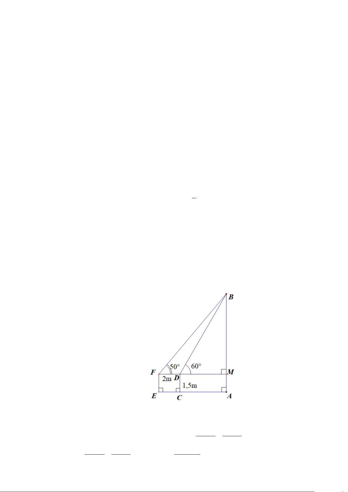 của mình ông An nghĩ ra cách đo như sau: Từ vị trí D cách mặt đất 1,5m , ông An sử dụng