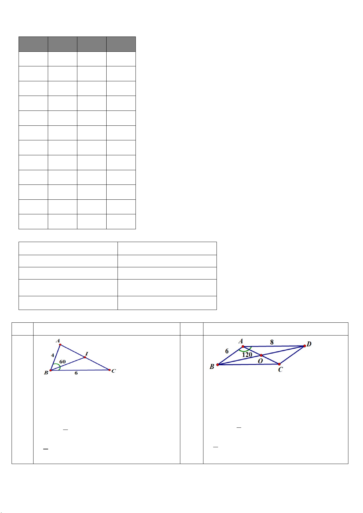 Câu 4: S-Đ-Đ-S Câu Đề 101-103 Điểm Đề 102-104 1 = = A . B AD A . B A . D cos BAD a, B . A BC B . A BC.cos ABC 0,25 a, 0 = 4.6.cos60 =12 0 = 6.8.cos120 = 24 − 0,25 b, b,