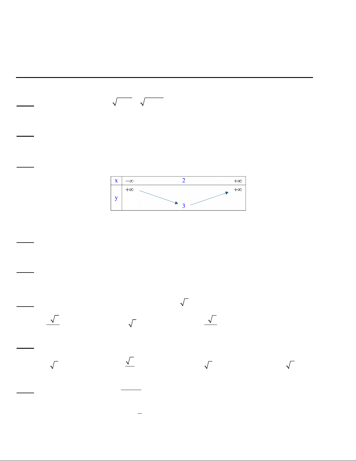Câu 3. Bảng biến thiên của hàm số y = f (x) . Xác định khoảng nghịch biến của hàm số? A. (2;+∞) . B. ( ;2 −∞ ) . C. (3;+∞) . D. ( ; +∞ 3) .