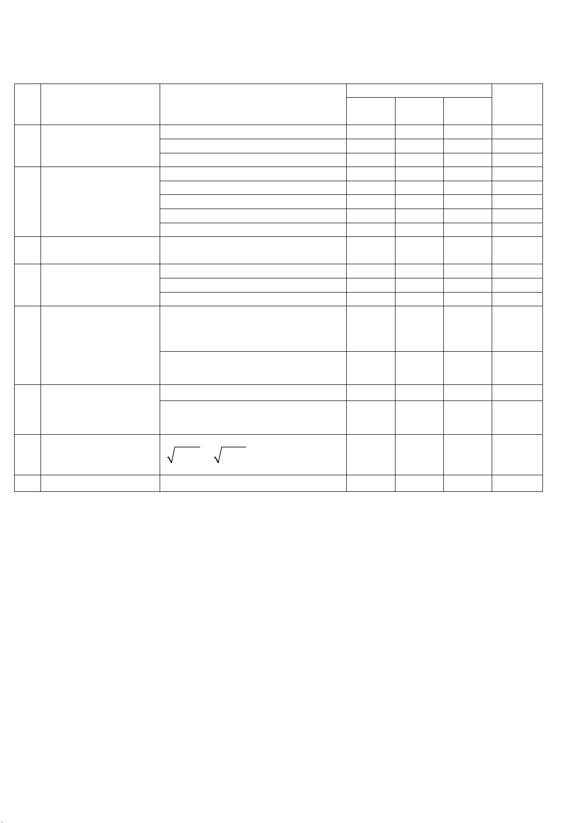 Đơn vị kiến thức Nhận Thông Vận Tổng biết hiểu dụng Định lí cosin 1 1 1 Giải tam giác Định lí sin 1 1 Diện tích tam giác 2 2 Hai véc tơ bằng nhau 1 1 Tổng của 2 véc tơ 1 1