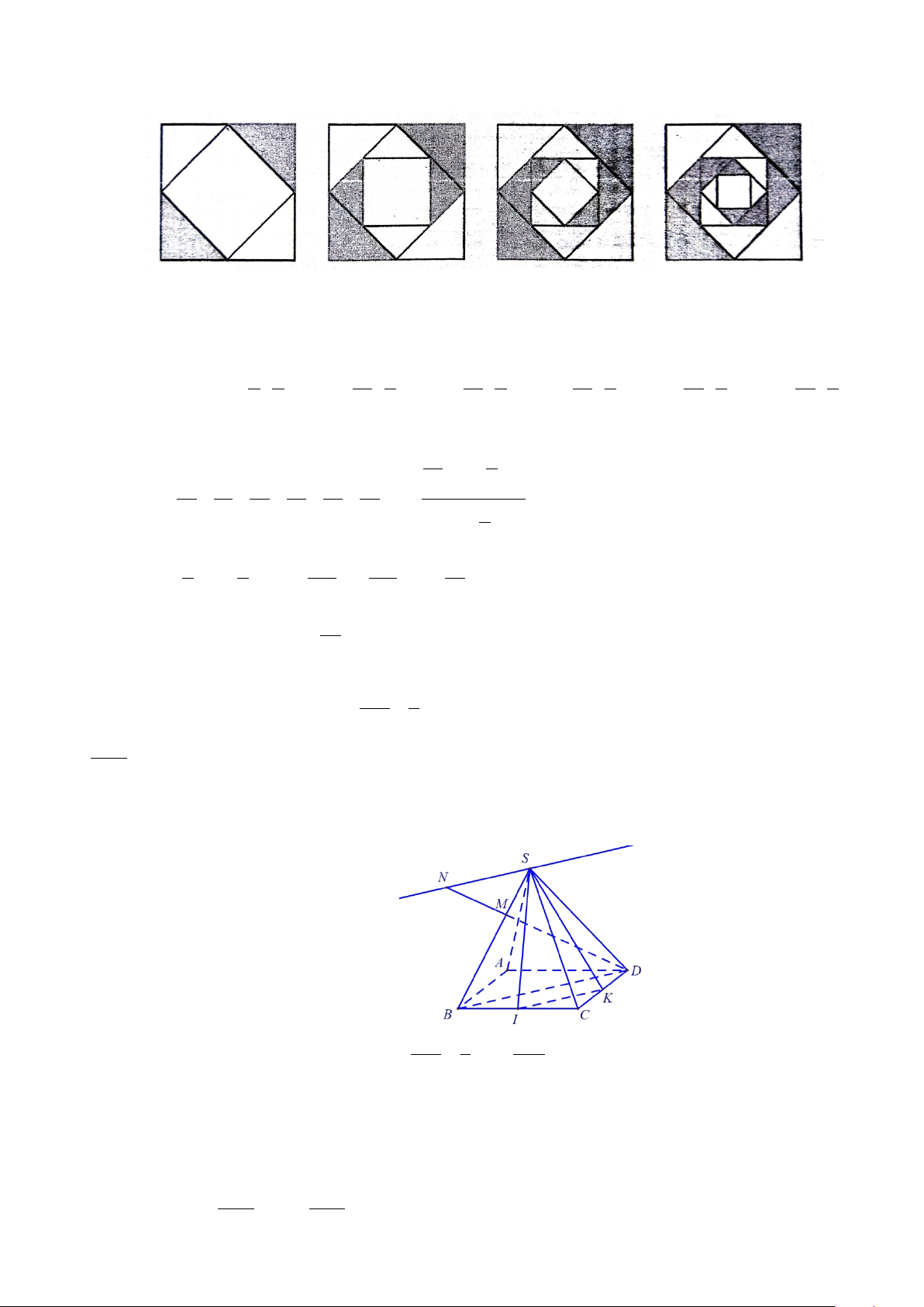 Gọi S là diện tích tam giác cần sơn màu mỗi lần tạo ra hình vuông thứ i, S là diện tích hình i vuông ban đầu. Ta có 1 1 1 1 1 1 1 1 S S S S S S ; 1 1 1 1 ; ; S S ; S S ; S S = = = = = = 1 2 2 3 3 4 4 5 5 6 6 2 2 2 2 2 2 2 2 2 2 2 2