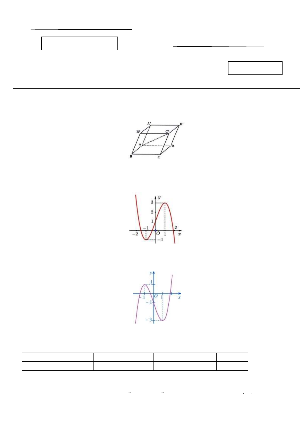 Câu 1. Cho hình hộp 𝐴𝐵𝐶𝐷. 𝐴′𝐵′𝐶′𝐷′ (minh họa như hình bên).