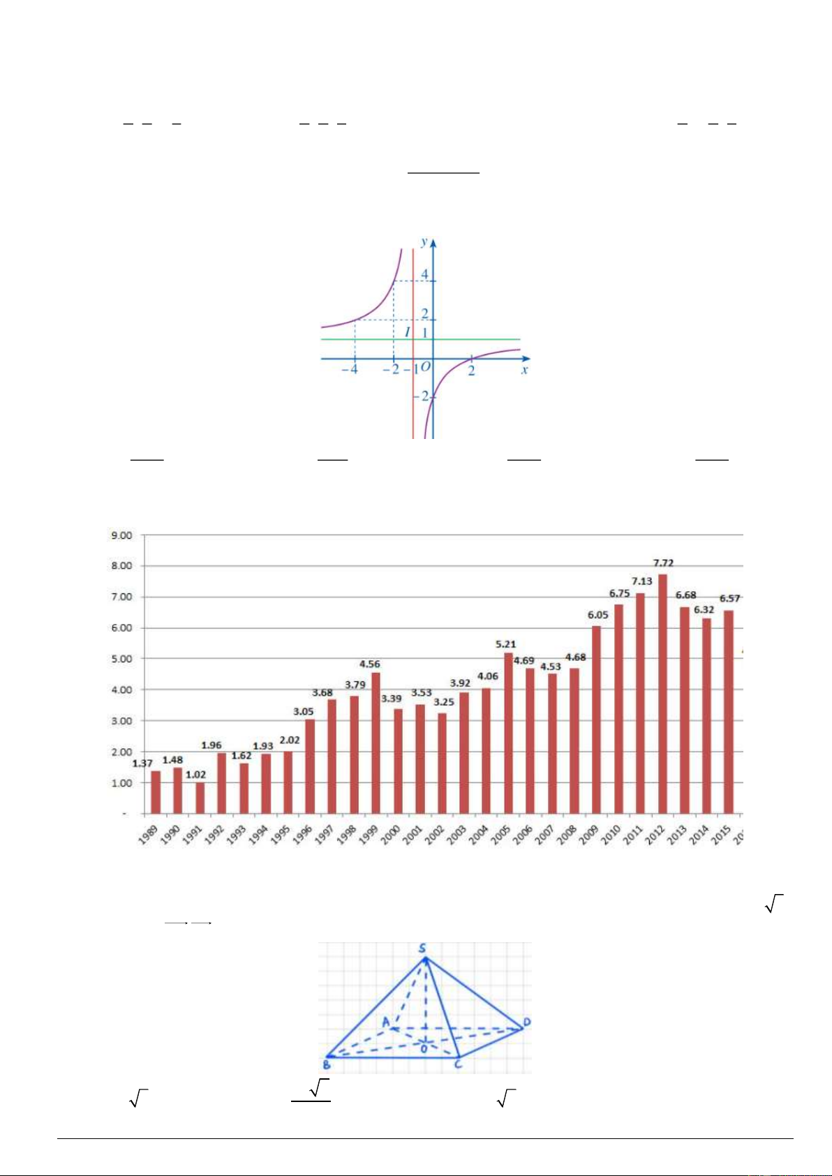 Câu 8. Đồ thị sau đây là của hàm số nào?    x +1 x −1 x −1 x − 2  A. y = .   B. y = .   C. y = .   D. y = .  x − 2 x +1 x + 2 x +1
