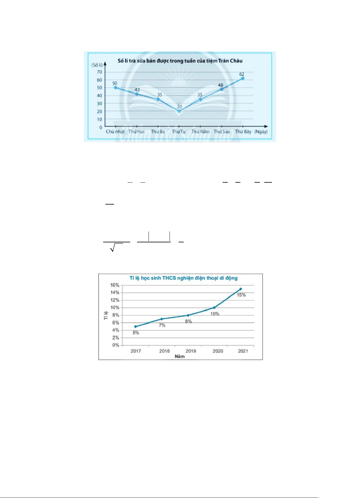 Câu 12. Quan sát hình vẽ. Cho biết số ly trà sữa bán ngày thứ hai là A. 35. B. 50. C. 62. D. 42.