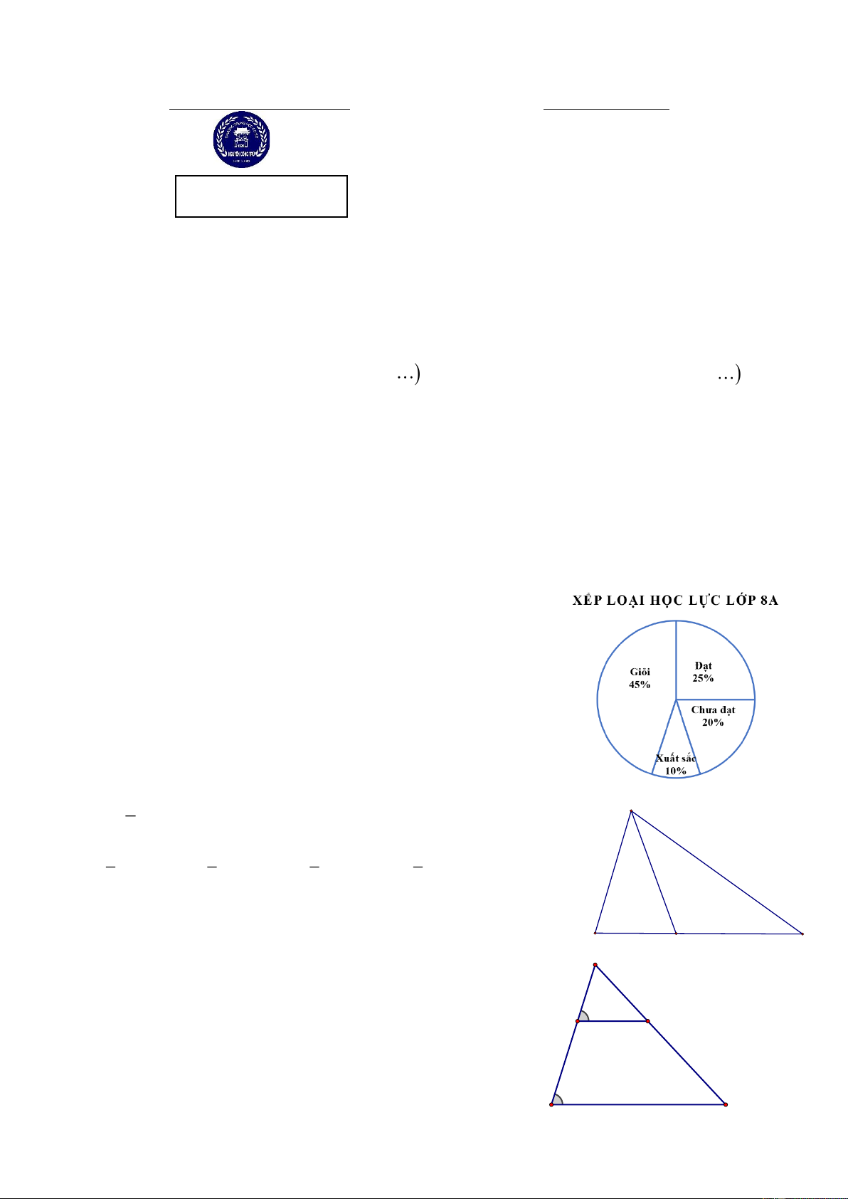 b) Cho biết số học sinh của lớp 8A là 50 học sinh. Hãy cho biết số học 1đ