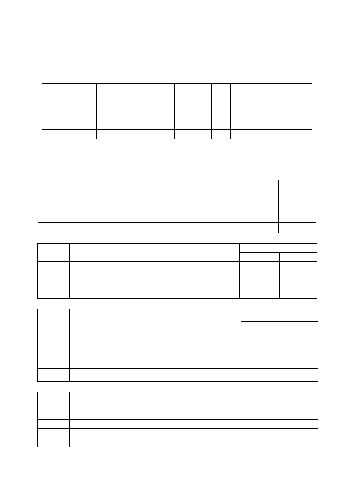 Khoanh tròn vào chữ cái đầu câu trả lời đúng từ câu 1 đến câu 12. (3,0điểm) Câu 1 2 3 4 5 6 7 8 9 10 11 12 Đề gốc C B D B C C B A D B A D Đề 01 B D A C B A A C A A A B Đề 02 D D B A B C A D D A C B Đề 03 B C C C C C B D D C B B Đề 04 D C B D A D A C A D B C