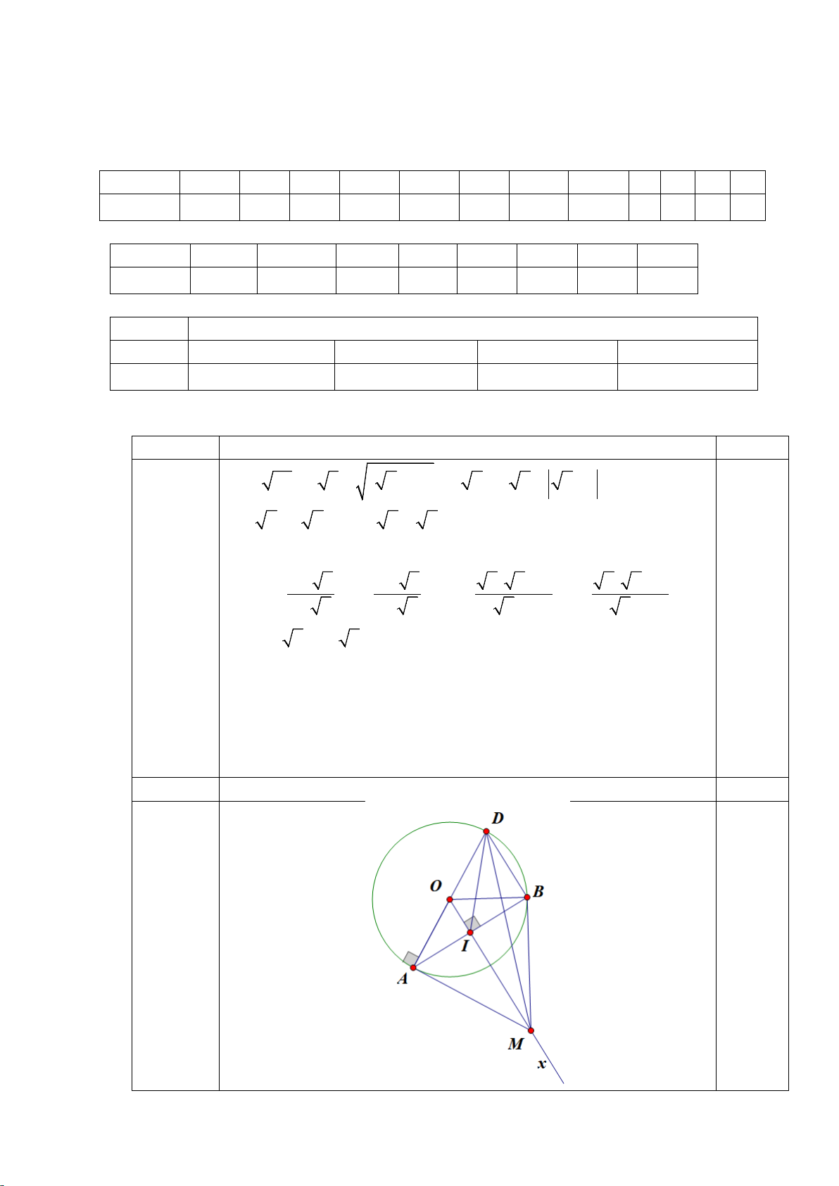 Vậy x=2 là giá trị cần tìm. Bài 2 0,25 (1,5đ) Xét OA ∆ I vuông tại I có: 0,75 2 2 2 2 2 2