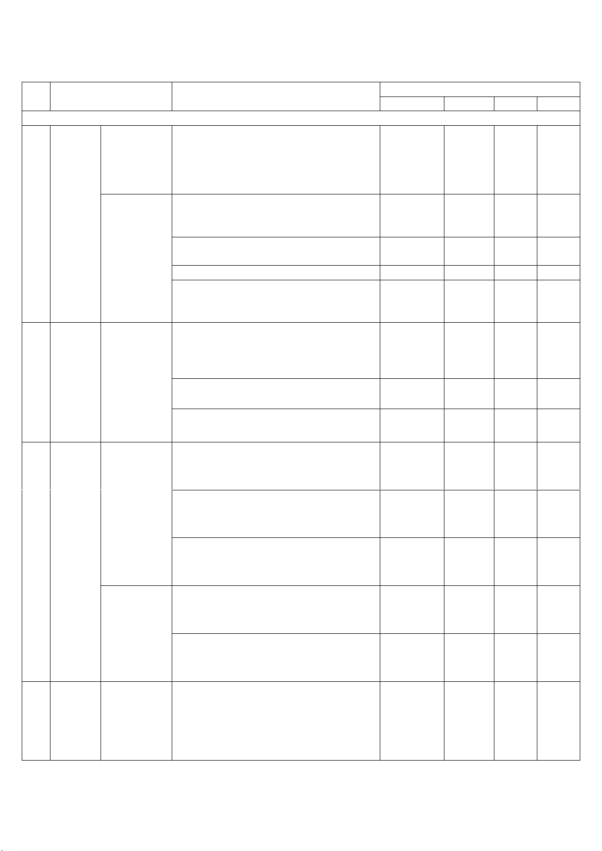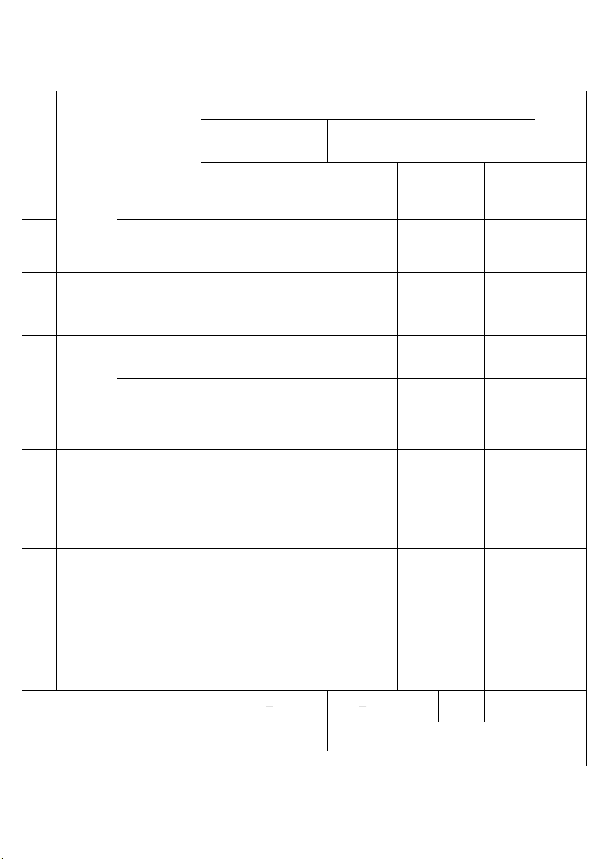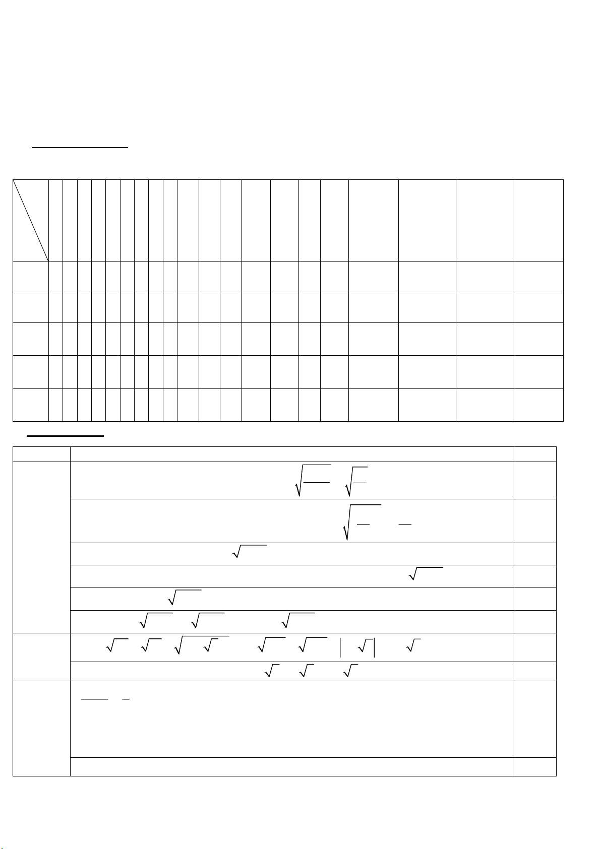 Mức độ đánh giá Chương/ Nội dung/đơn Tổng % TT Vận Chủ đề vị kiến thức Vận /Điểm Nhận biết Thông hiểu dụng dụng cao TN KQ TL TNKQ TL TL TL Phương Phương trình 5% 1 trình và quy về PTBN 1 0,5đ một ẩn hệ phương Phương trình trình và hệ PTBN 1 10% (14 tiết) hai ẩn 1,0đ Bất Bất đẳng thức. PTBN 5% 2 Bất PTBN 1 1 một ẩn 0,5đ một ẩn (13 tiết) Căn bậc hai và căn bậc ba của 25% Căn bậc 4 1 2,5đ số thực hai và Căn thức bậc 3 căn bậc hai và căn ba thức bậc ba 4 1 15% (11 tiết) của biểu thức 1,5đ đại số Tỉ số lượng Hệ thức lượ giác của góc ng nhọn. Một số trong 5% 4 hệ thức về 1 1 tam giác 0,5đ cạnh và góc vuông trong tam giác (10 tiết) vuông Đường tròn. VTTĐ 20% của hai 3/4 1/4 1 2,0đ đường tròn VTTĐ của Đường đường thẳng và 5 tròn đường tròn. 2,5% 1/4 (12 tiết) 0,25đ Tiếp tuyến của đường tròn Góc ở tâm, 12,5% 3/4 1 góc nội tiếp 1,25đ Tổng số câu 1 1 11 2 2 3 1 20 2 2 Tổng số điểm 4,0 1,0 2,0 2,0 1,0 10,0 Tỉ lệ % 40% 10% 20% 20% 10% 100% Tỉ lệ chung 70 % 30% 100% 1