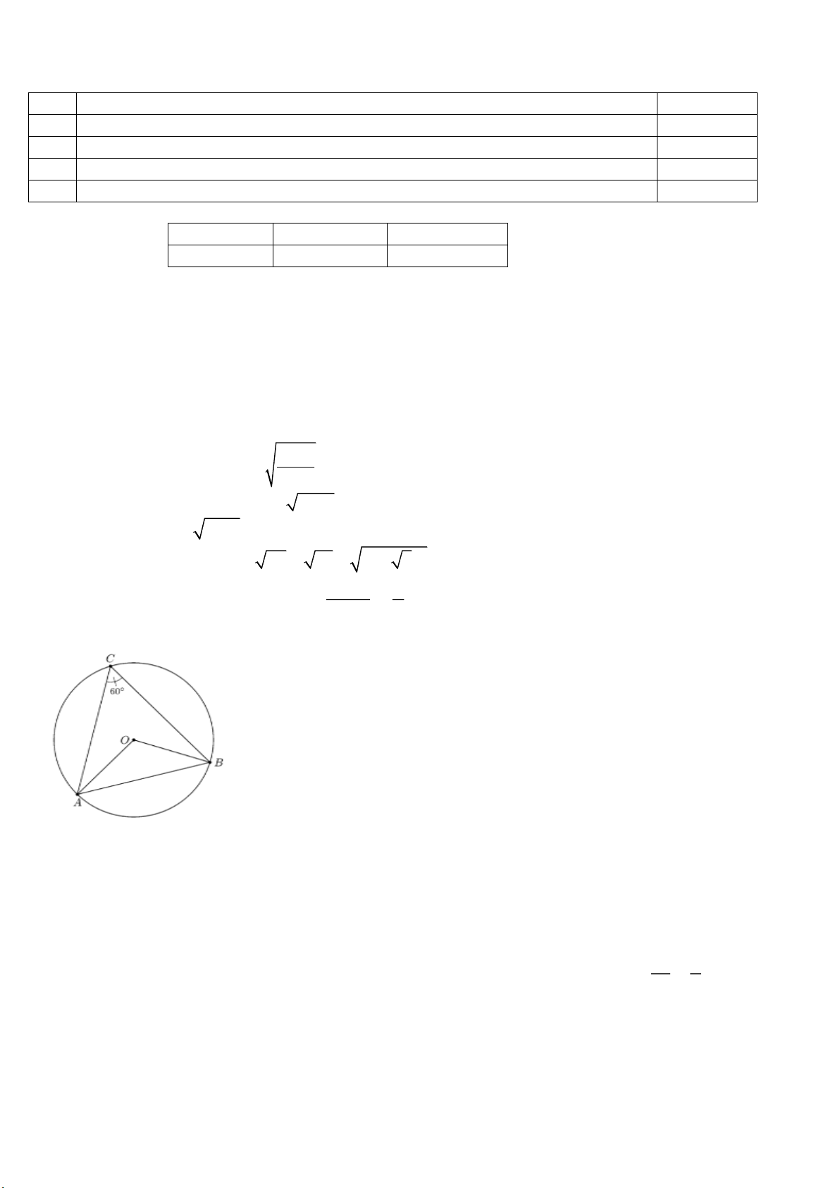 AOB = 2. ACB = 2. 0 60 = 0 120 . Vậy AOB = 0 120 . 0,25 0,25 19 1đ