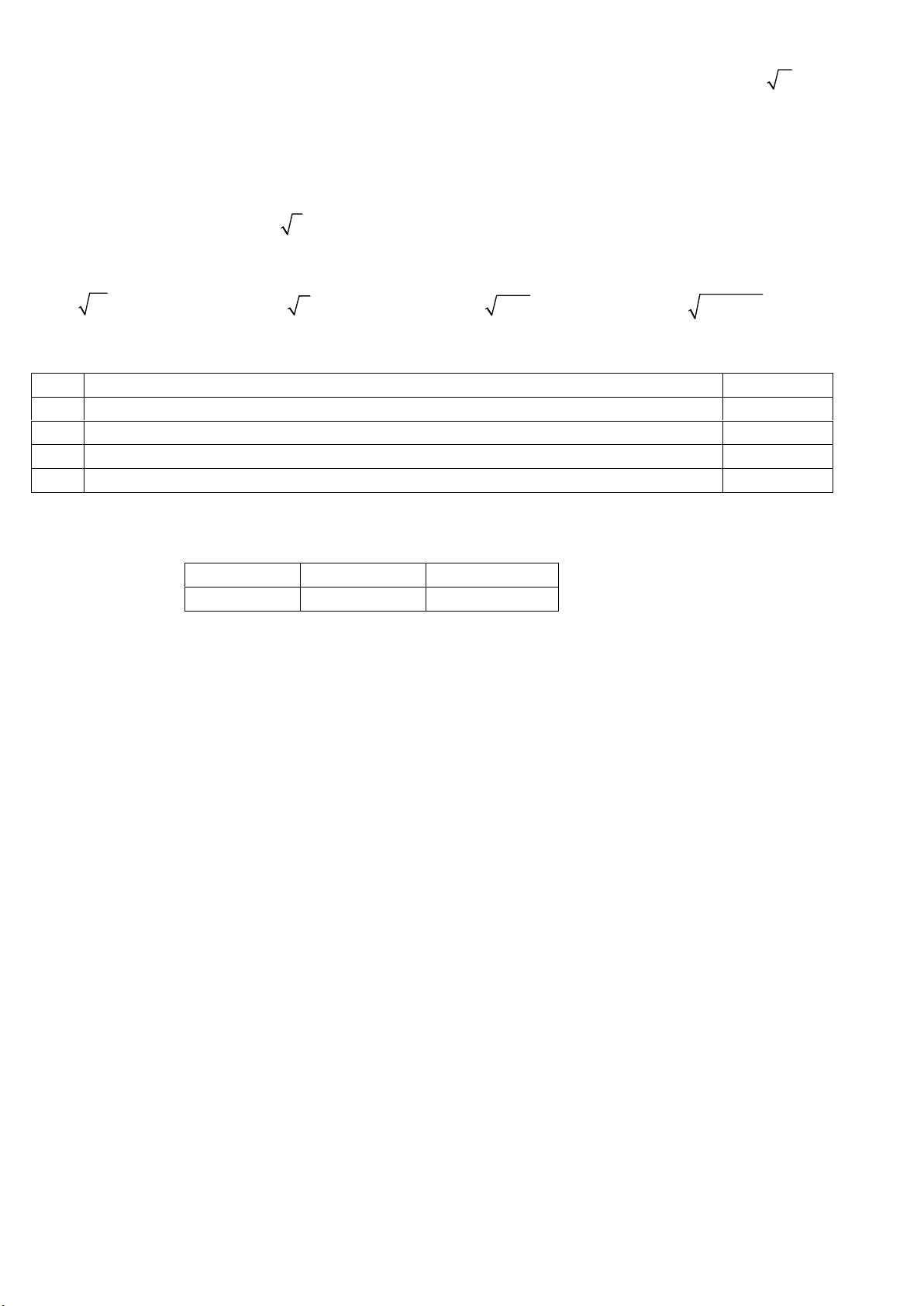 Câu 6: Biểu thức nào sau đây là căn thức bậc hai? A. 2