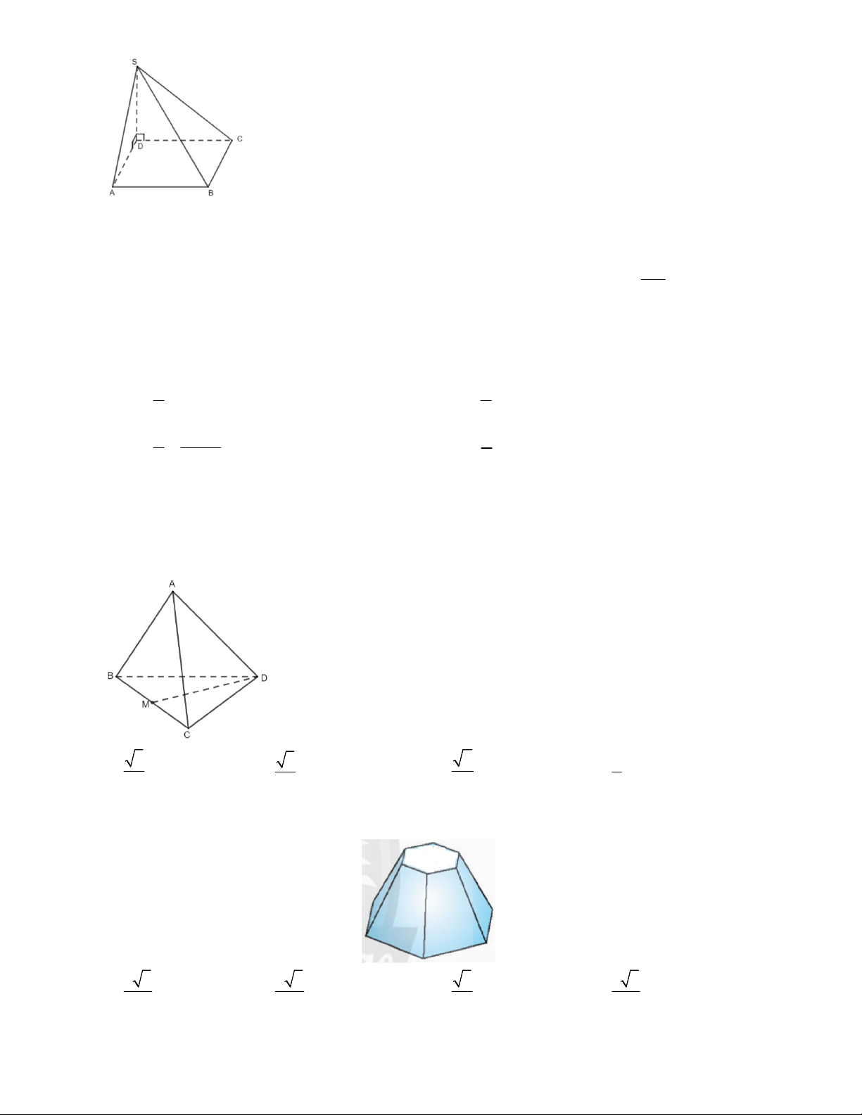 Câu 38. Cho hình chóp S.ABCD có đáy ABCD là hình vuông cạnh a , SA vuông góc với đáy và a 6 SA