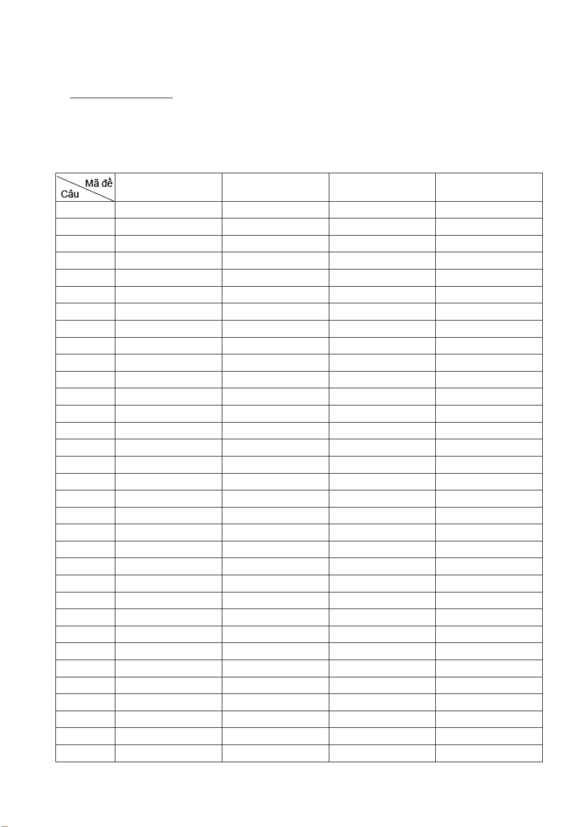 PHẦN I. Câu trắc nghiệm nhiều phương án lựa chọn (40 câu – 7,0 điểm) – Học sinh trả lời từ câu 1 đến