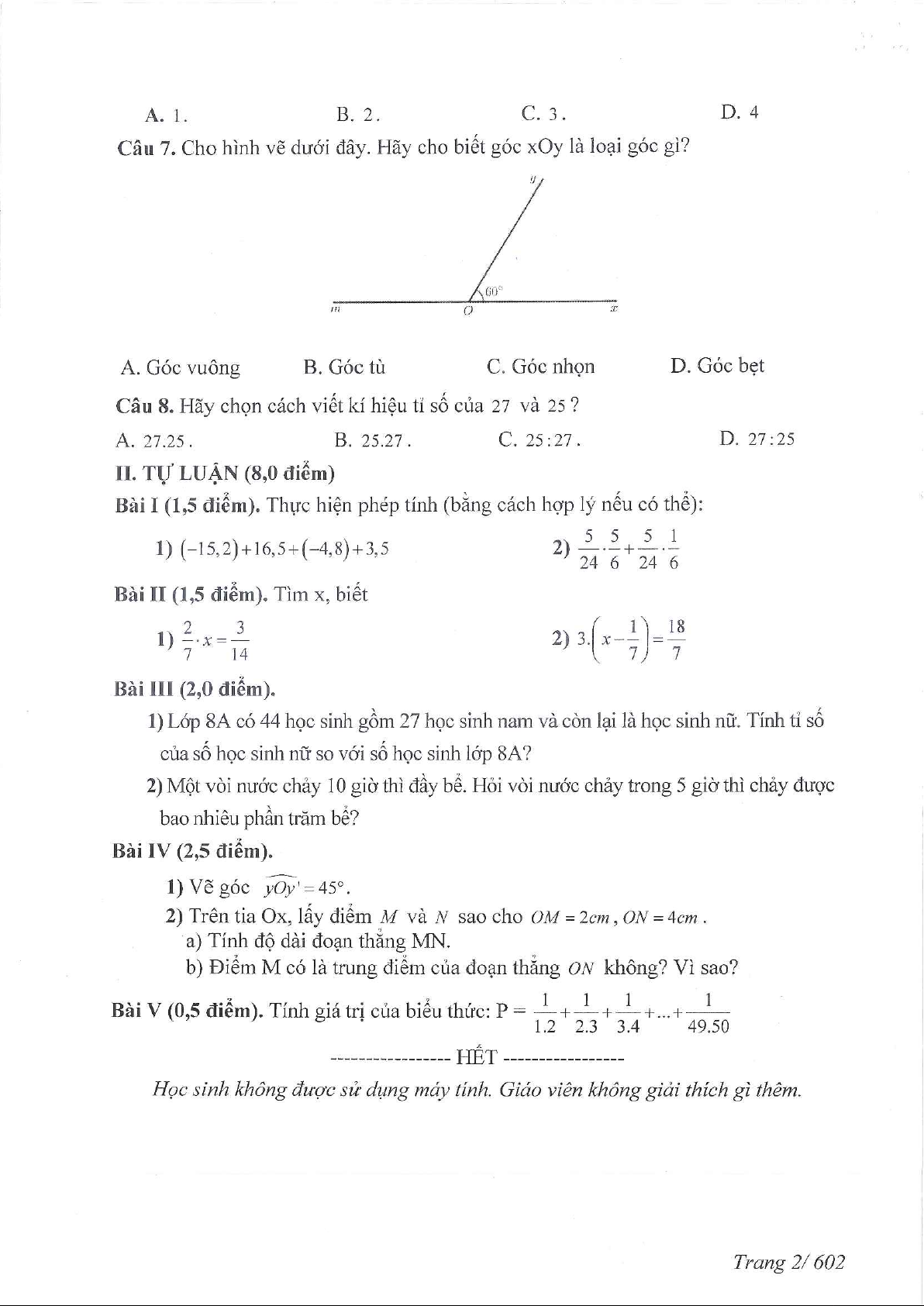 Chủ đề: Đề HK2 Toán 6 205 tài liệu