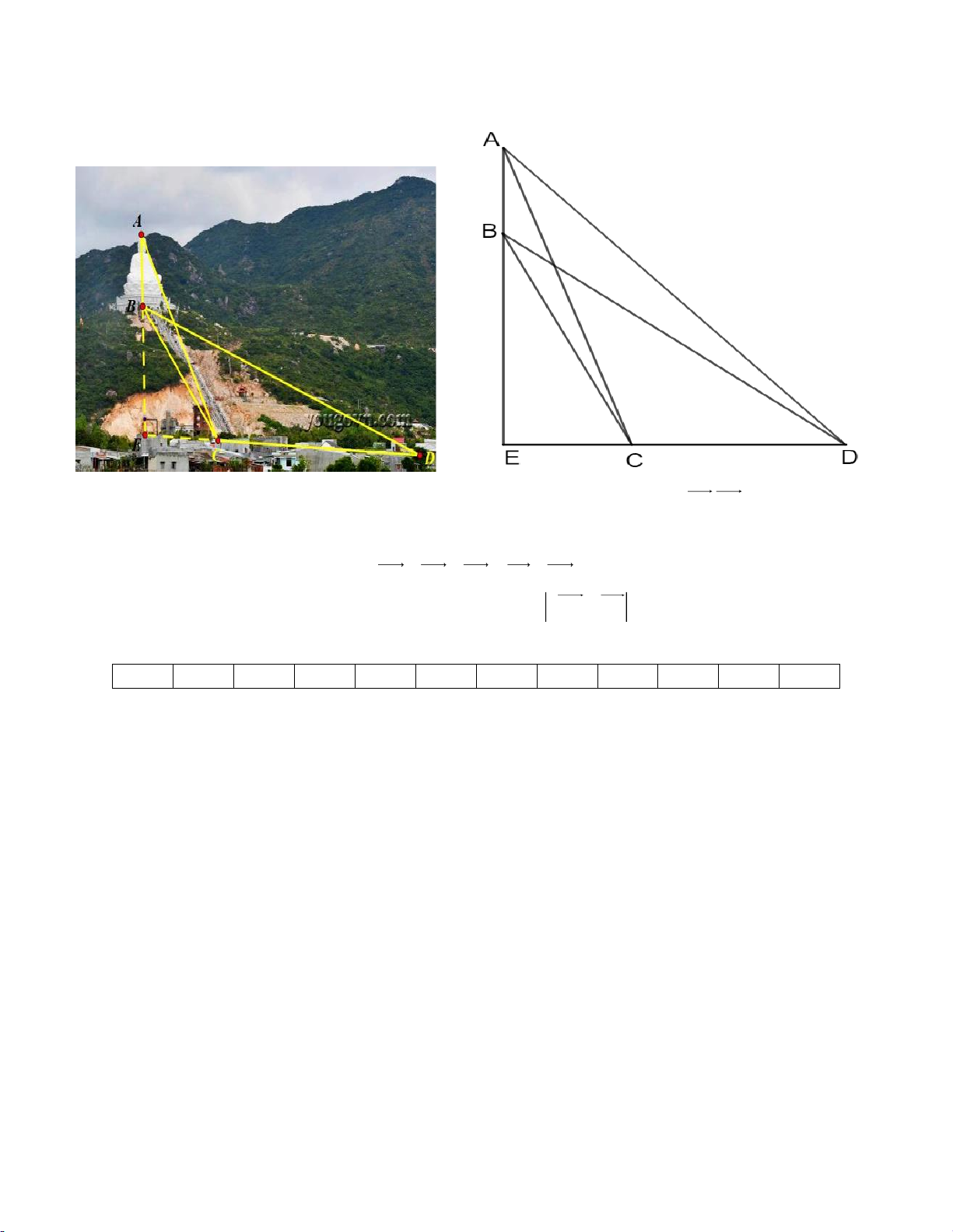Để tính chiều cao AB của bức tượng, người ta đo ở hai vị trí C và D cách nhau 200m. Tại C người ta đo