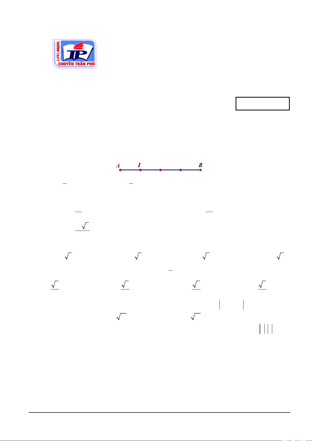 Câu 1. Trên đoạn thẳng AB lấy điểm I sao cho AB = 4AI . Đẳng thức nào sau đây đúng? A. 4 IB = − AB . B. 4 IB = AB .