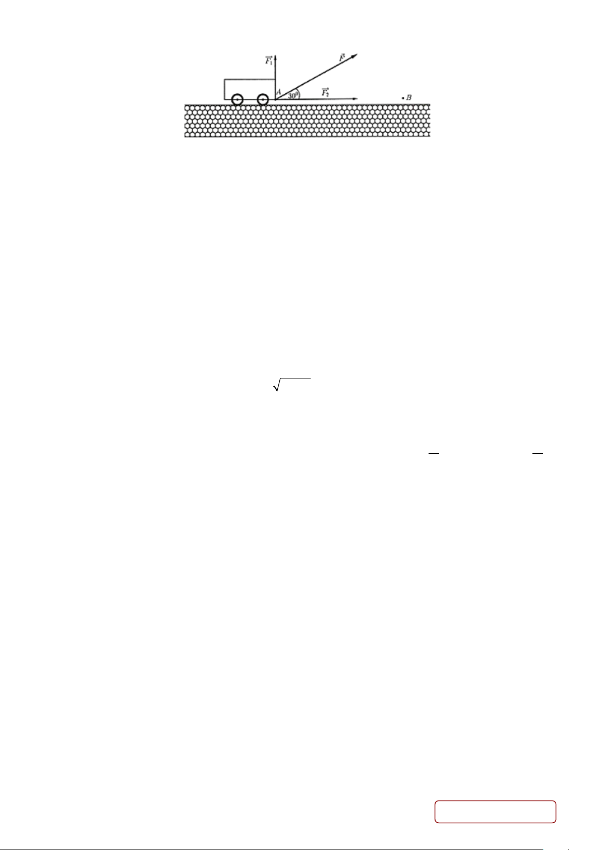 Câu 2. Một chiếc xe được kéo trên sàn dưới tác dụng của lực không đổi F có độ lớn 50 N , hợp với phương ngang góc 0