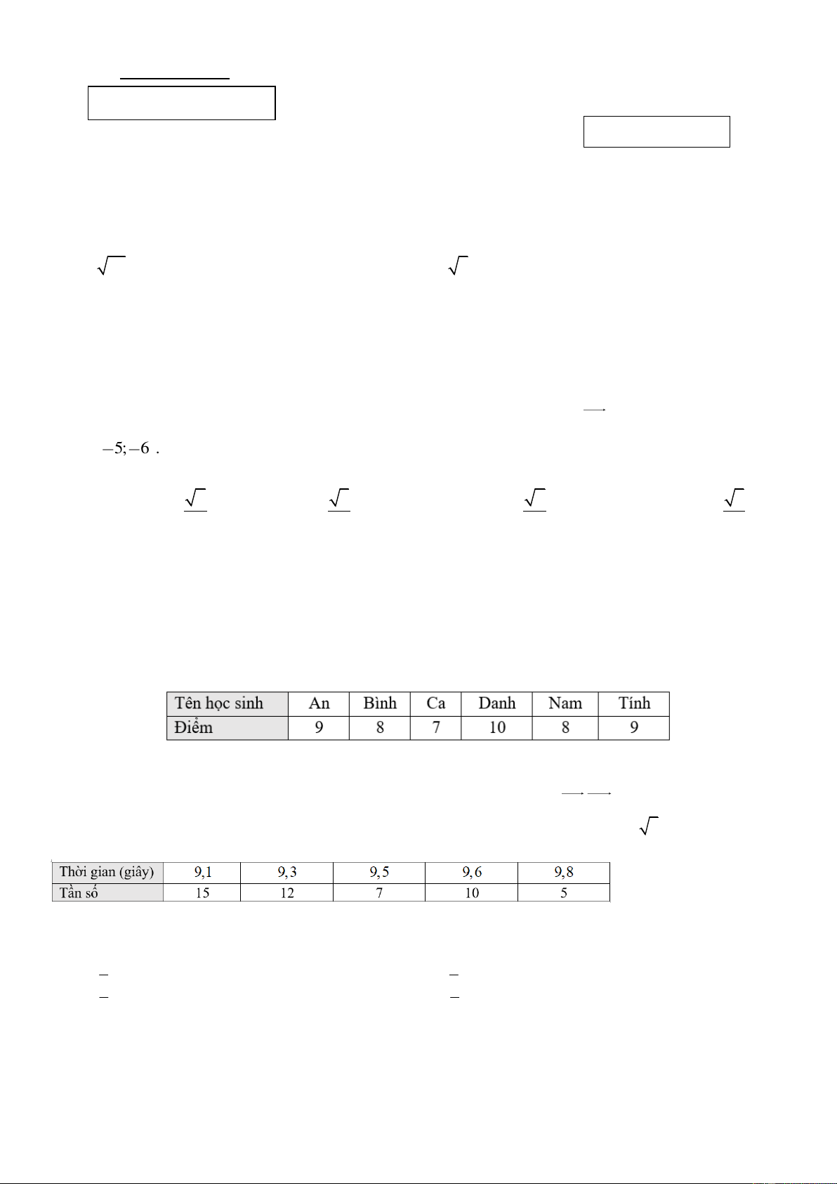 Câu 10:Thời gian chạy cự li 100m của các bạn trong lớp được ghi lại trong bảng dưới đây: