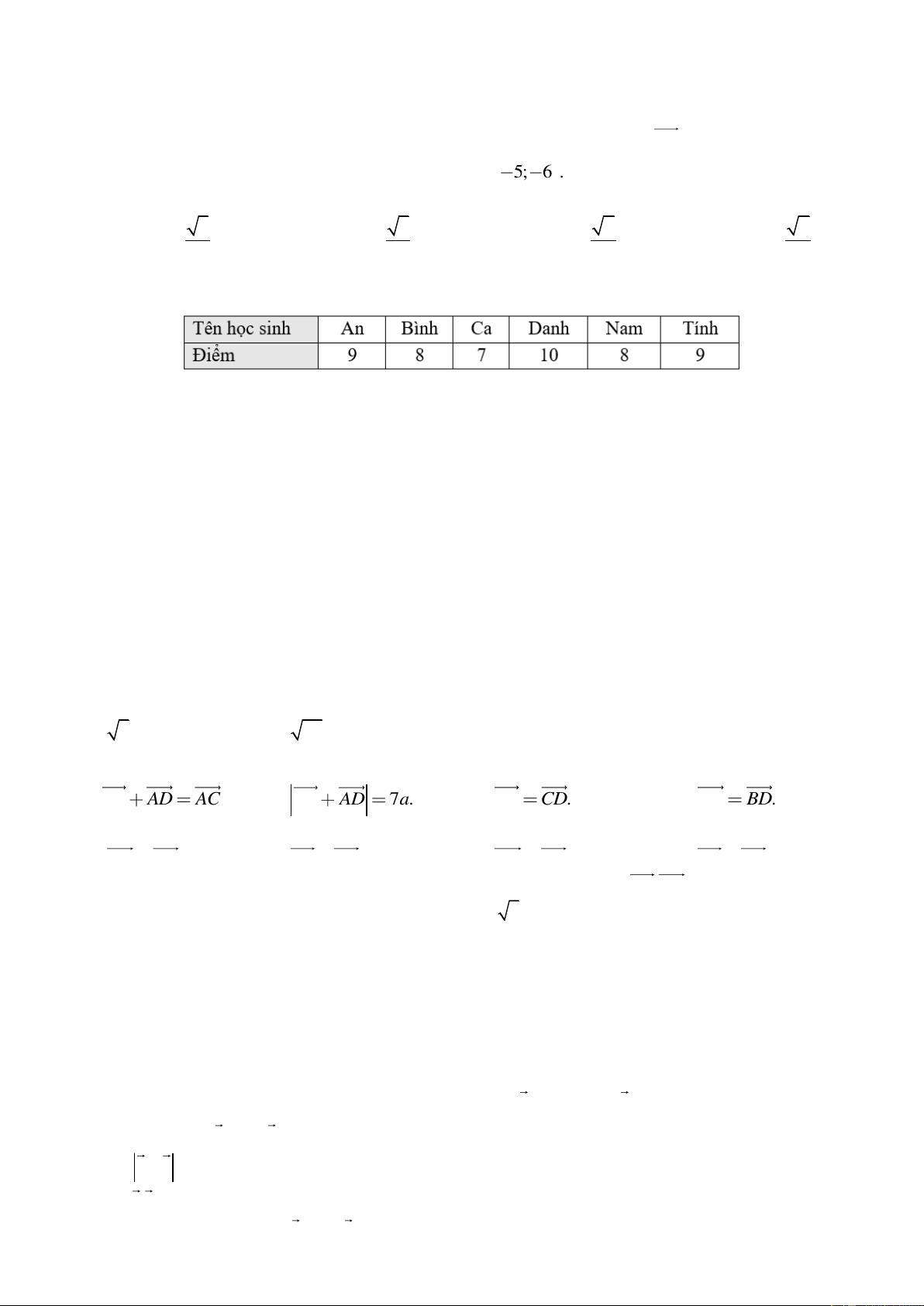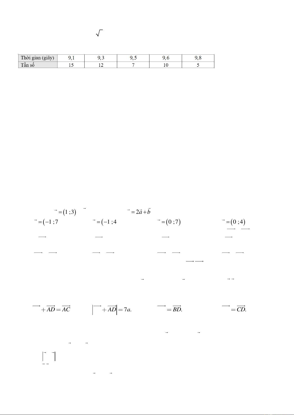 – Nhận biết được khái niệm vectơ, vectơ Câu 12