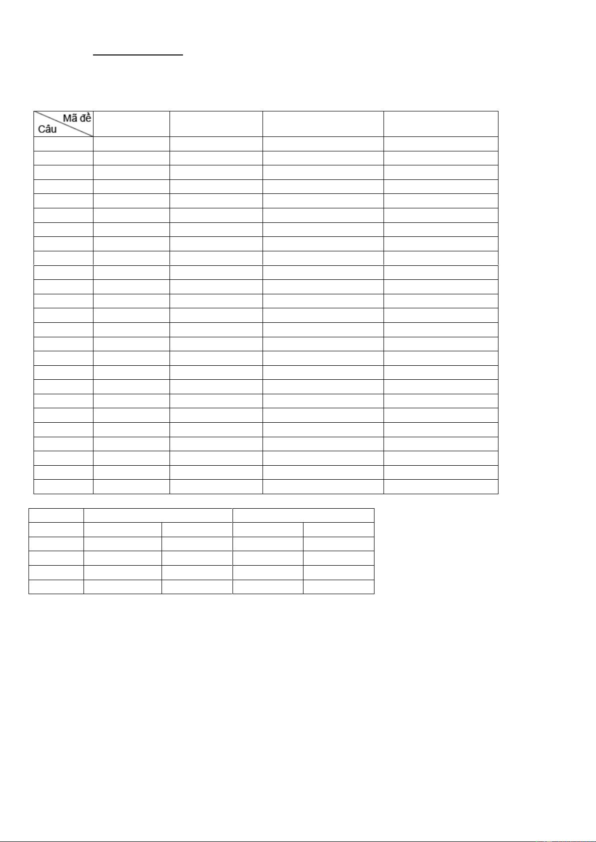 ( Học sinh trả lời từ câu 1 đến câu 25. Mỗi câu hỏi học sinh chỉ chọn một phương án)