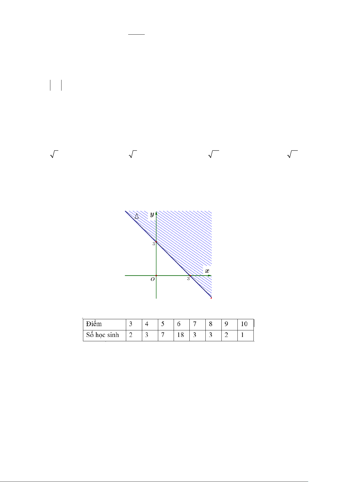 Câu 17. Trên mặt phẳng tọa độ (Oxy) , phần không tô đậm (kể cả bờ là đường thẳng ∆) trong hình vẽ dưới