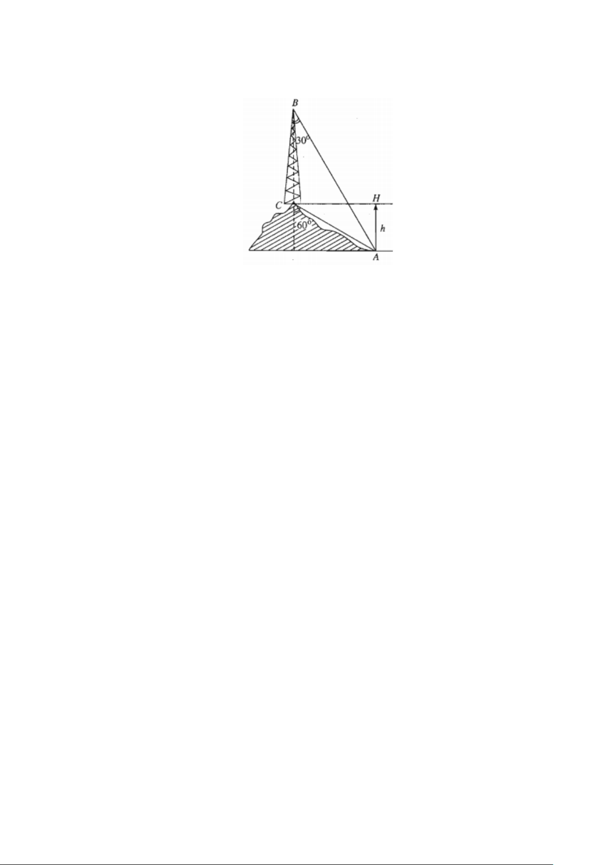 Câu 5. Trên ngọn đồi có một cái tháp cao 100m (hình vẽ). Đỉnh tháp B và chân tháp C lần lượt
