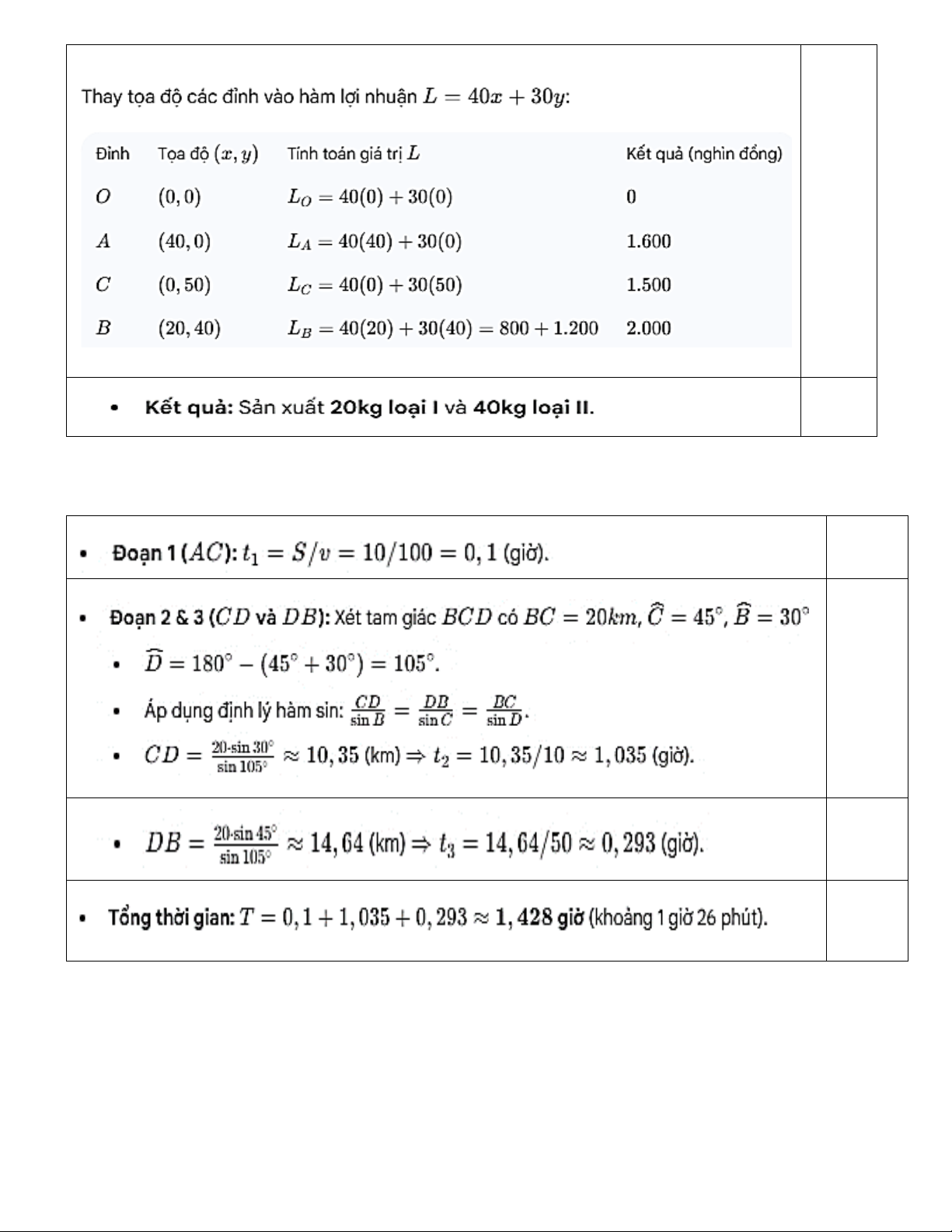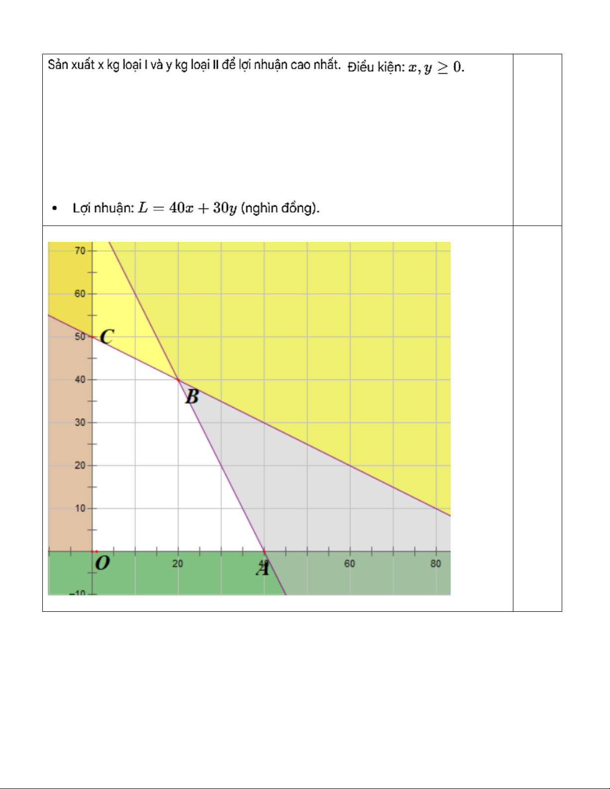 - Mỗi kg sản phẩm loại I cần 2 kg nguyên liệu và 30 giờ, thu lời được 40 nghìn.
