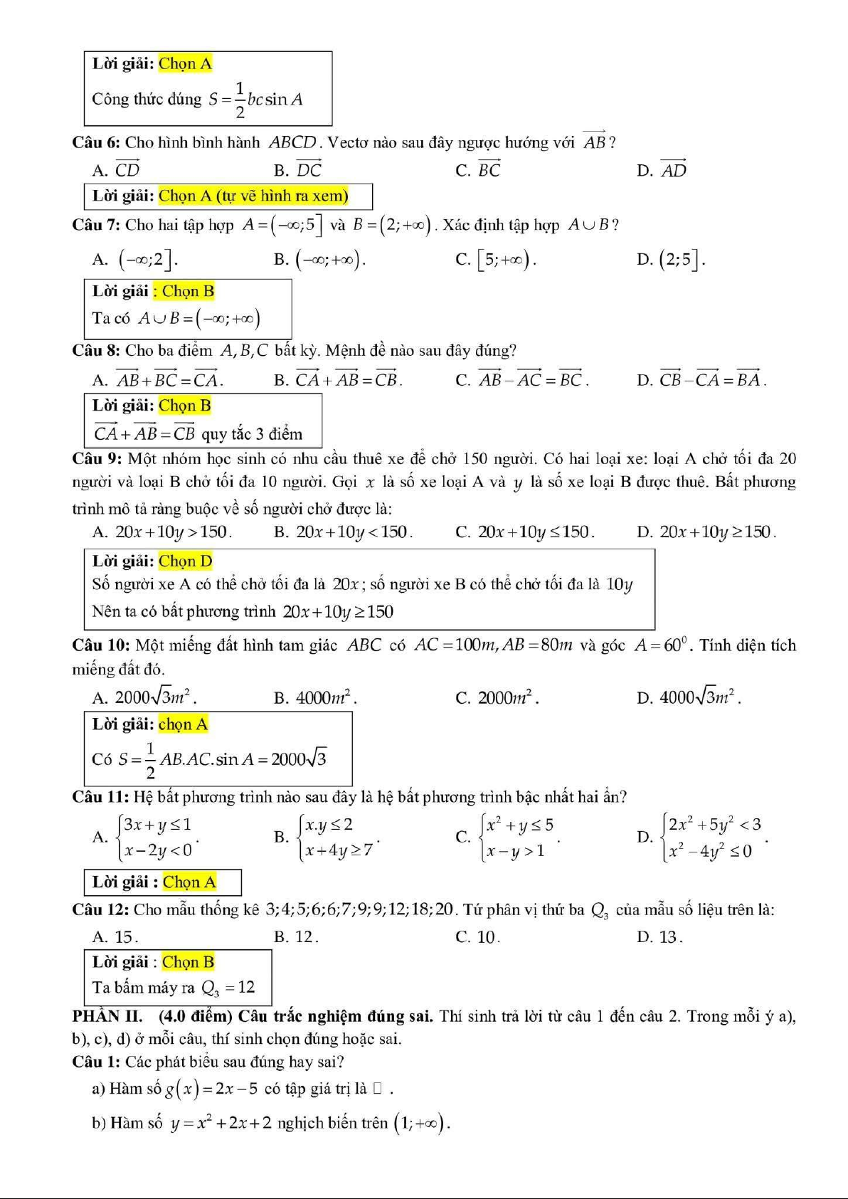 Đề học kỳ 1 Toán 10 năm 2025 – 2026 trường THPT Nhữ Văn Lan – Hải Phòng