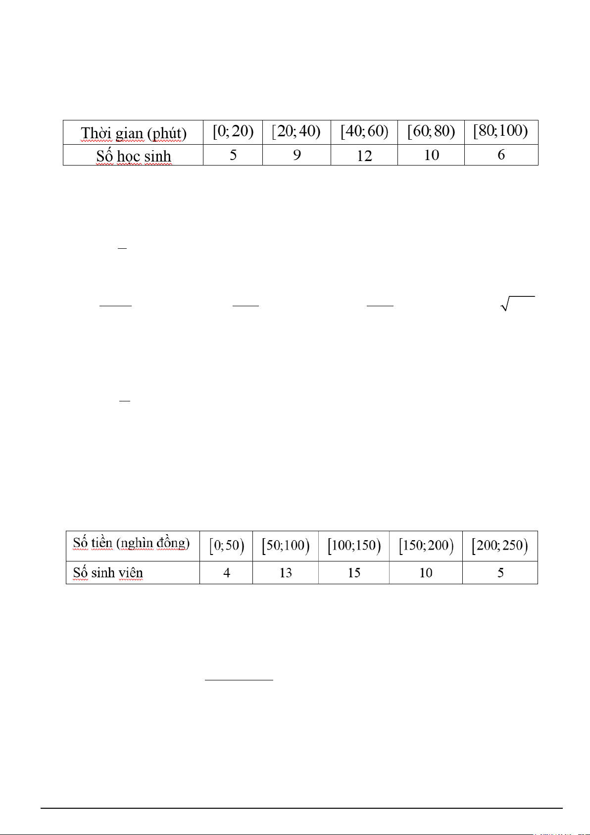 Câu 12. Mẫu số liệu sau cho biết số tiền mà sinh viên chi cho thanh toán cước điện thoại trong tháng: