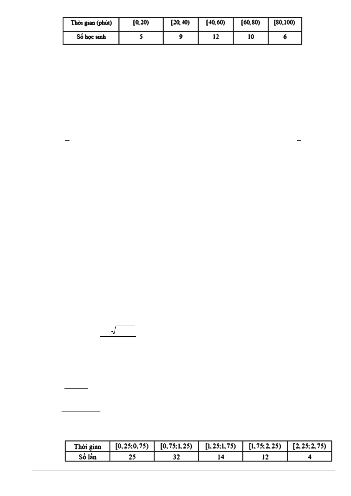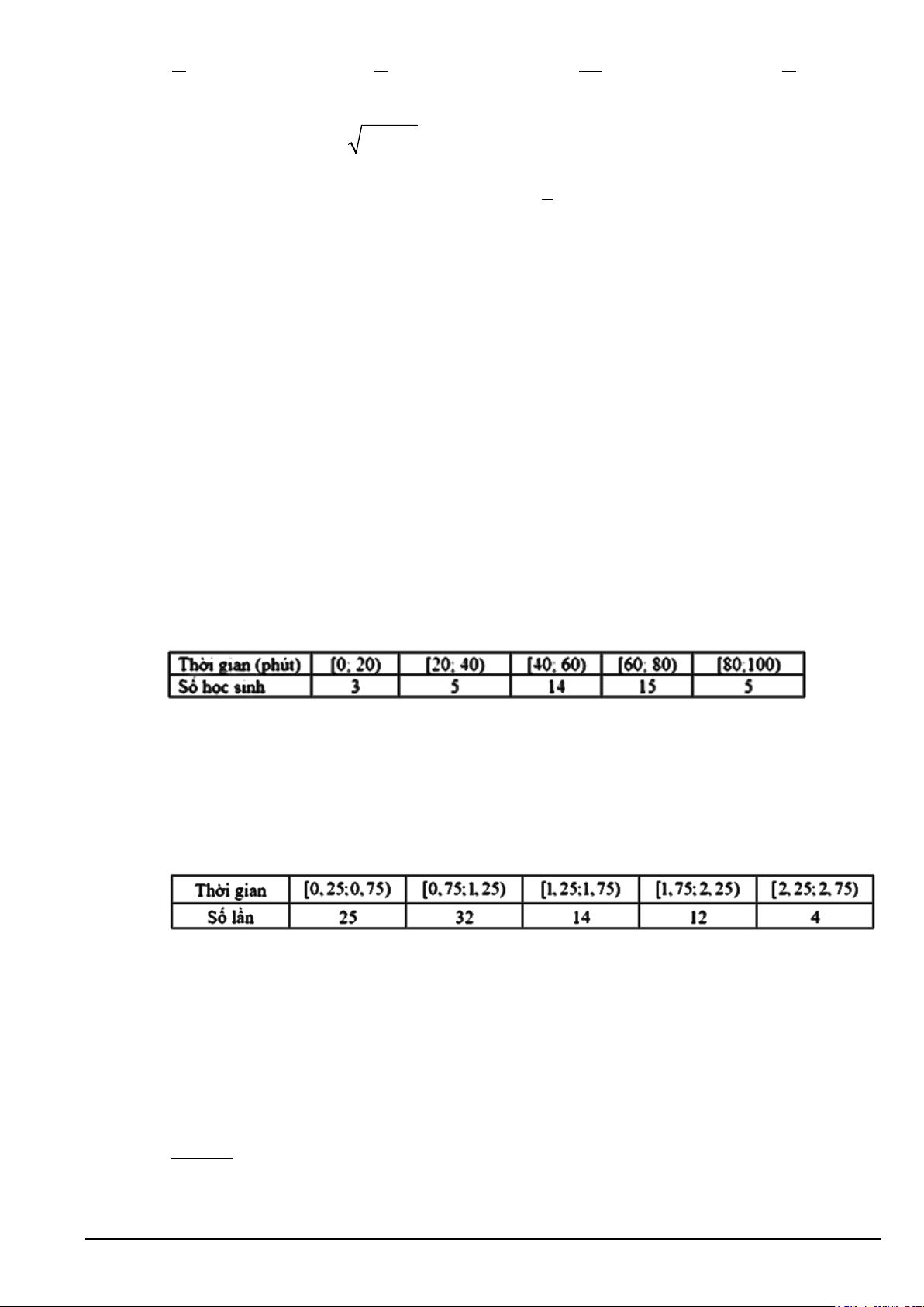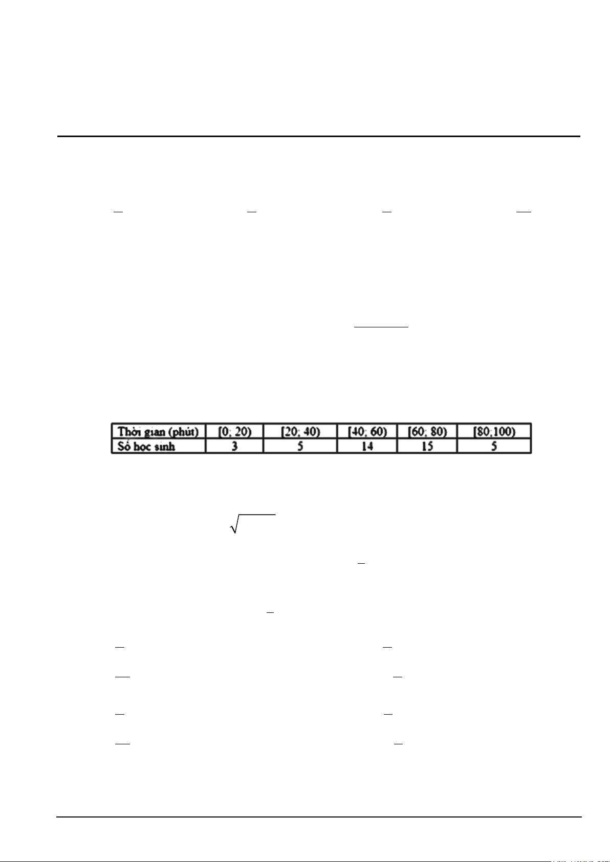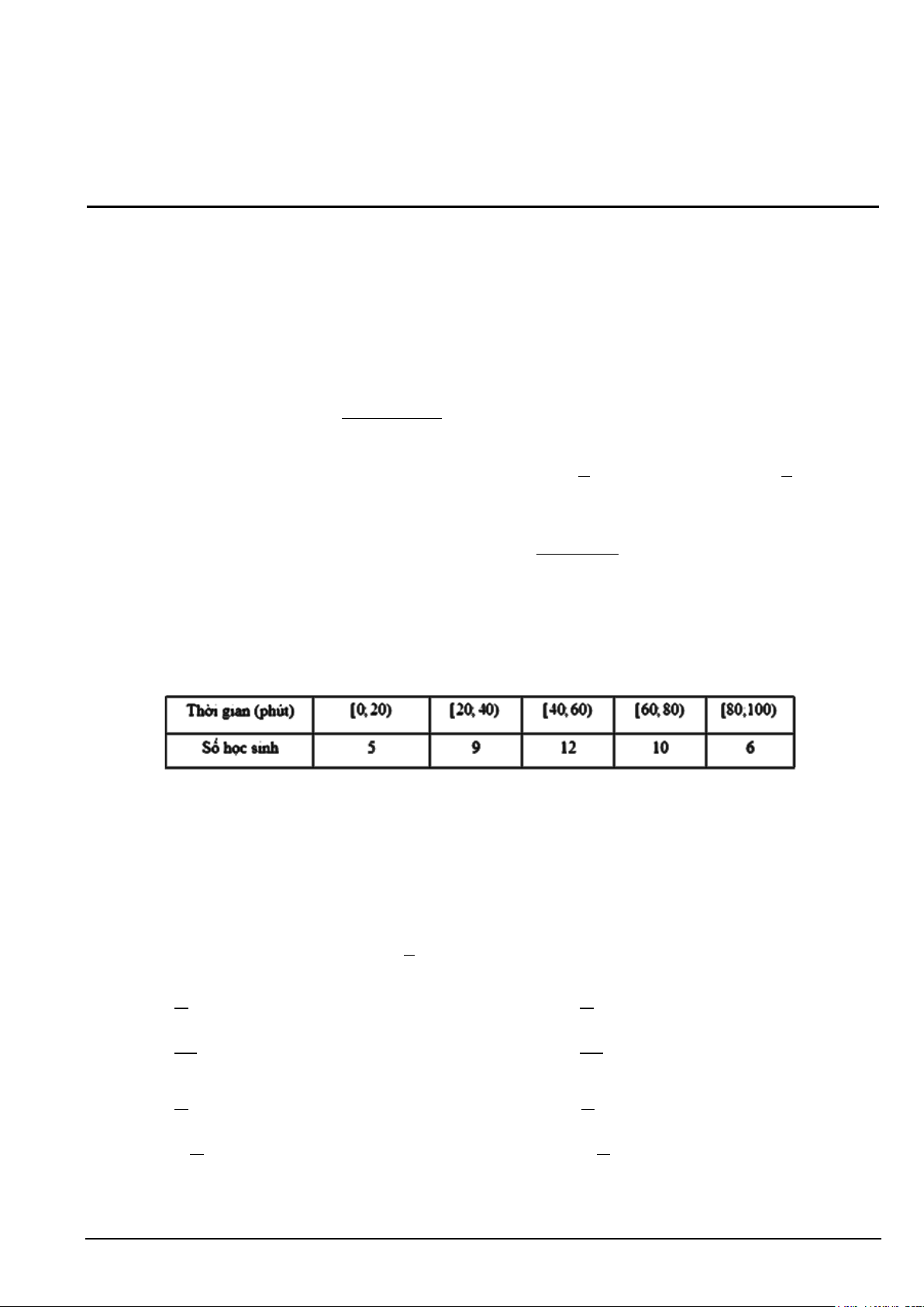 Câu 4. Khảo sát thời gian sử dụng điện thoại di động trong 1 ngày của một số học sinh khối 10 thu được