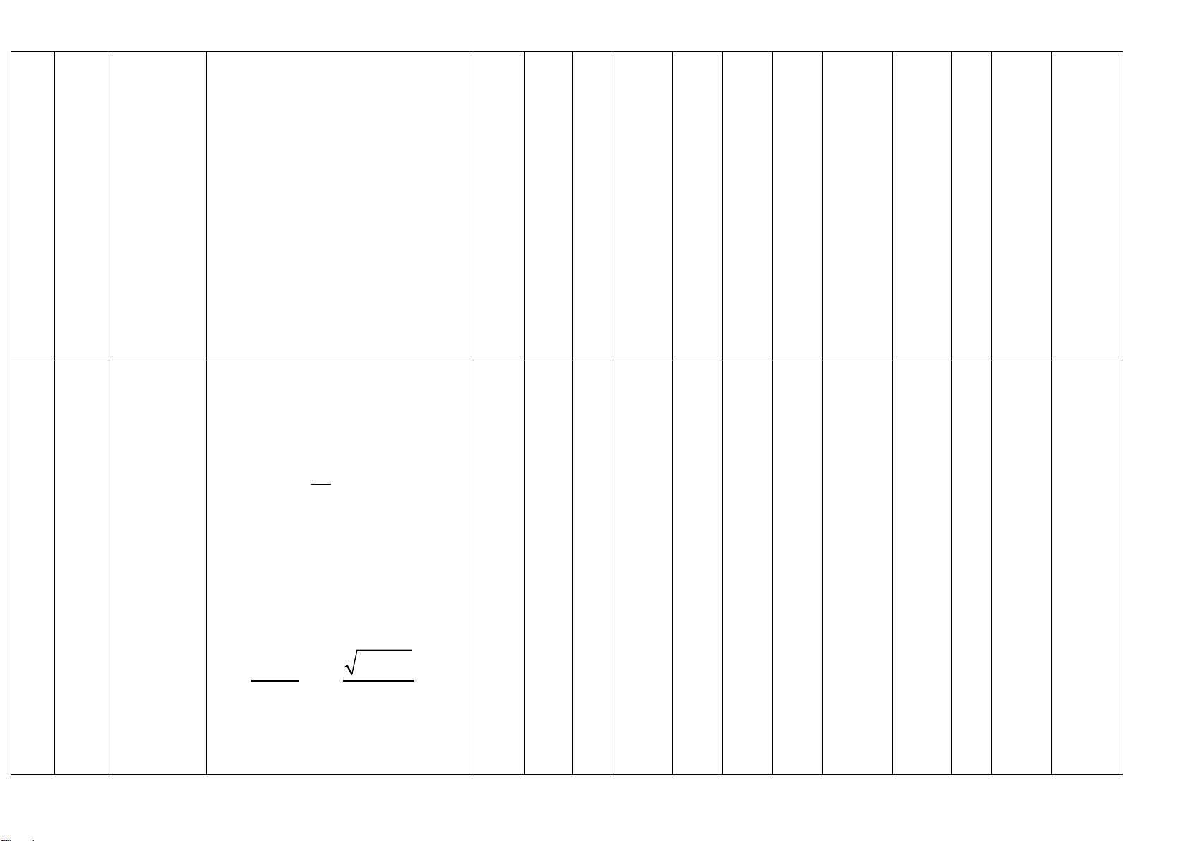 khoảng, hoặc trên một đoạn. Tổng số câu 9 3 0 3 5 0 0 0 4 2 2 2 Tổng số điểm 2,25 0,75 0 0,75 1.25 0 0 0 2.0 1 1 1 Tỉ lệ % 30 20 20 30