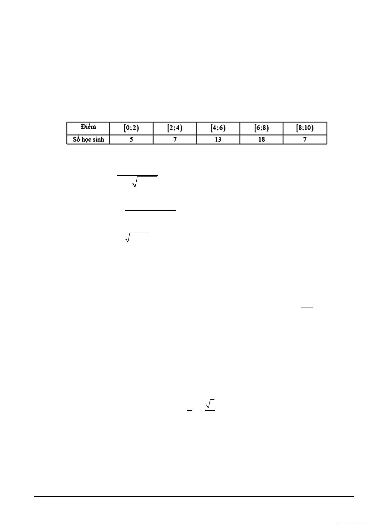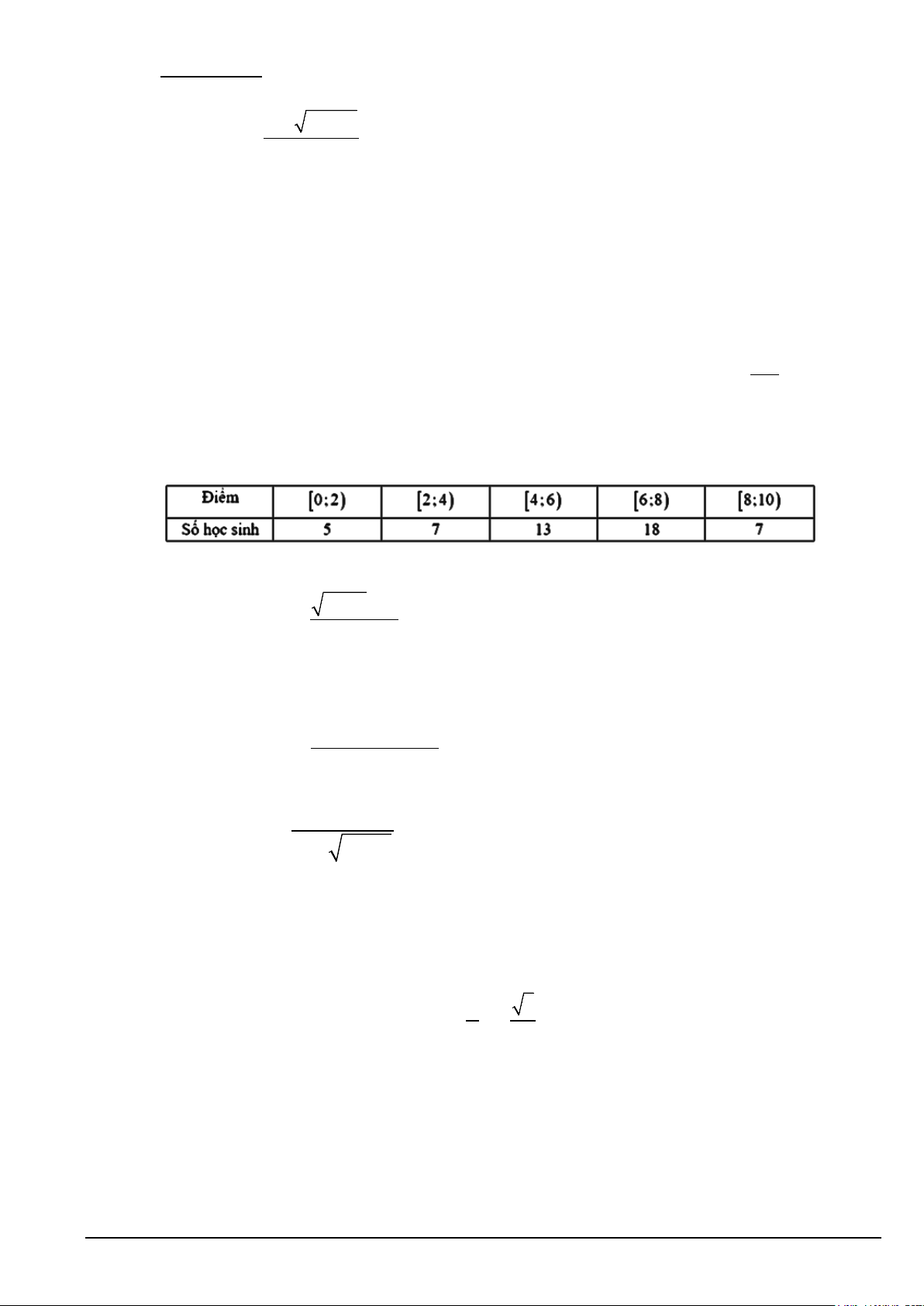 Câu 1. Cho mẫu số liệu ghép nhóm về thống kê điểm số (thang điểm 10 ) của 50 học sinh tham dự kỳ thi