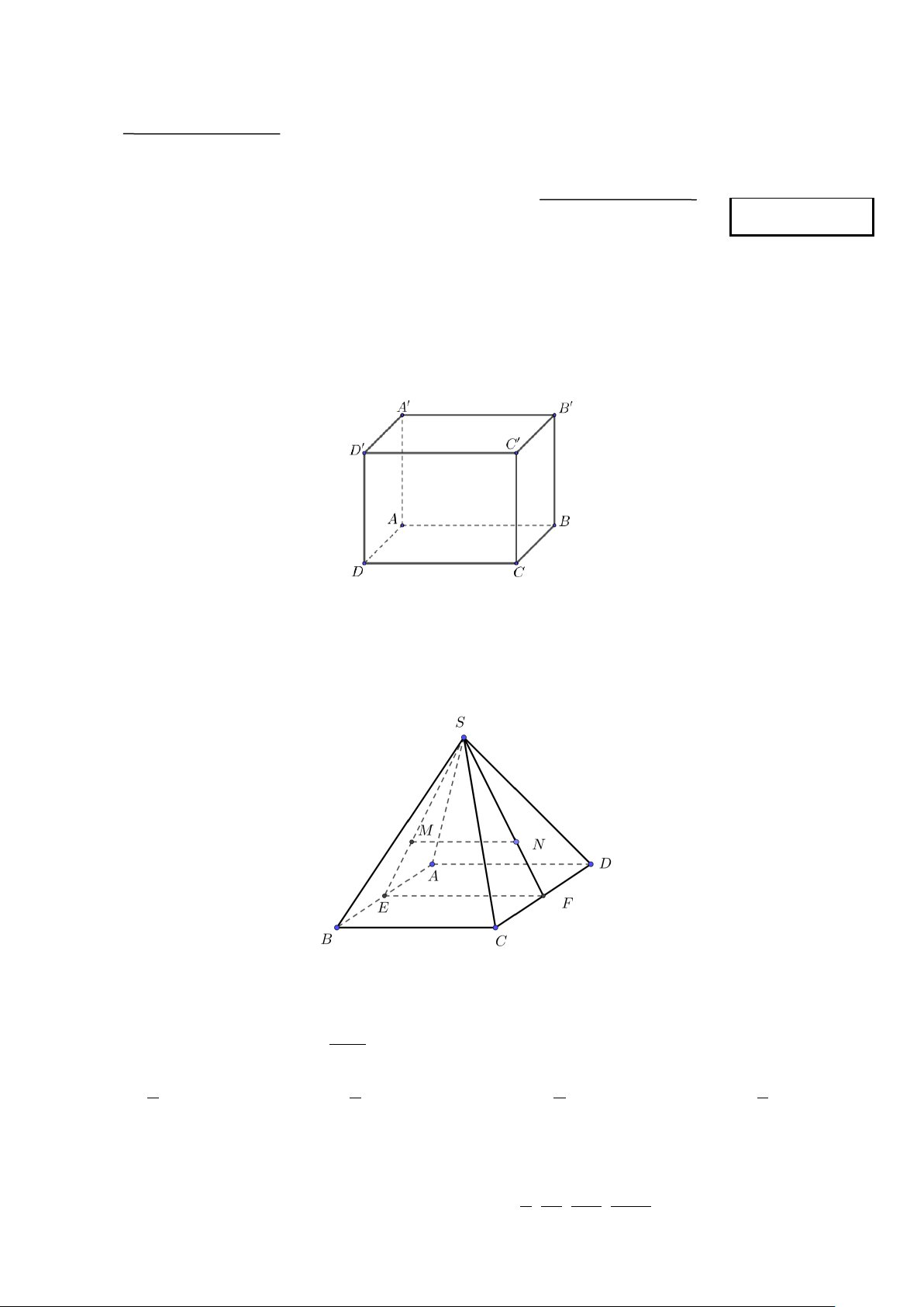 Câu 1. Cho hình hộp chữ nhật ABC . D A′B C ′ D