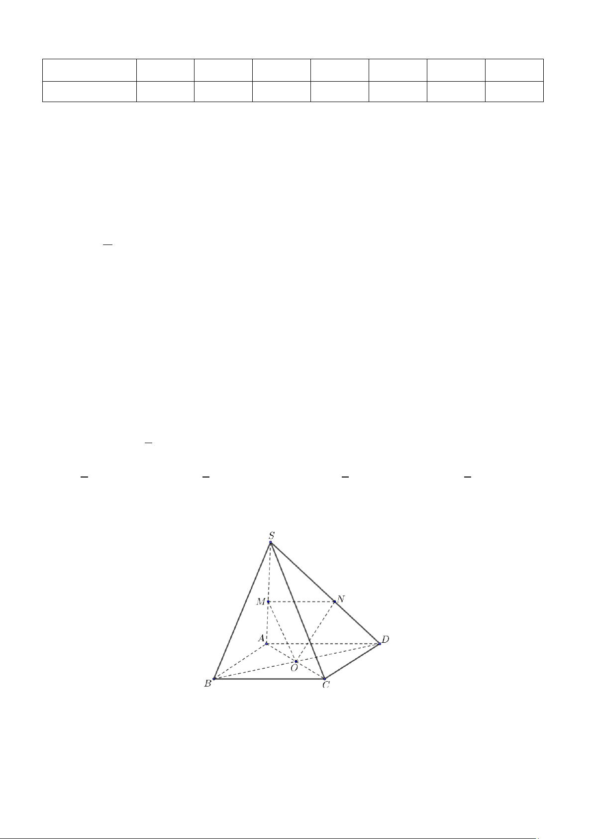 Câu 11. Cho hình chóp S.ABCD có đáy ABCD là hình bình hành tâm O (tham khảo hình vẽ). Gọi M , N
