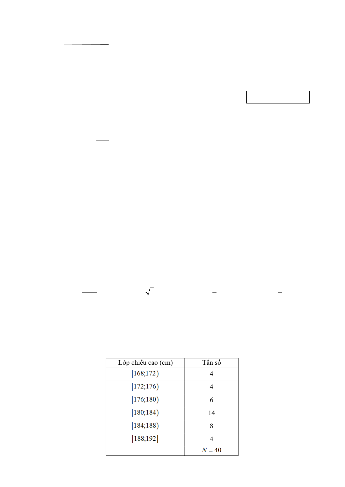 Câu 7: Chiều cao của 40 vận động viên bóng chuyền được cho trong bảng sau: Trang 1 / 4 - Mã đề 123