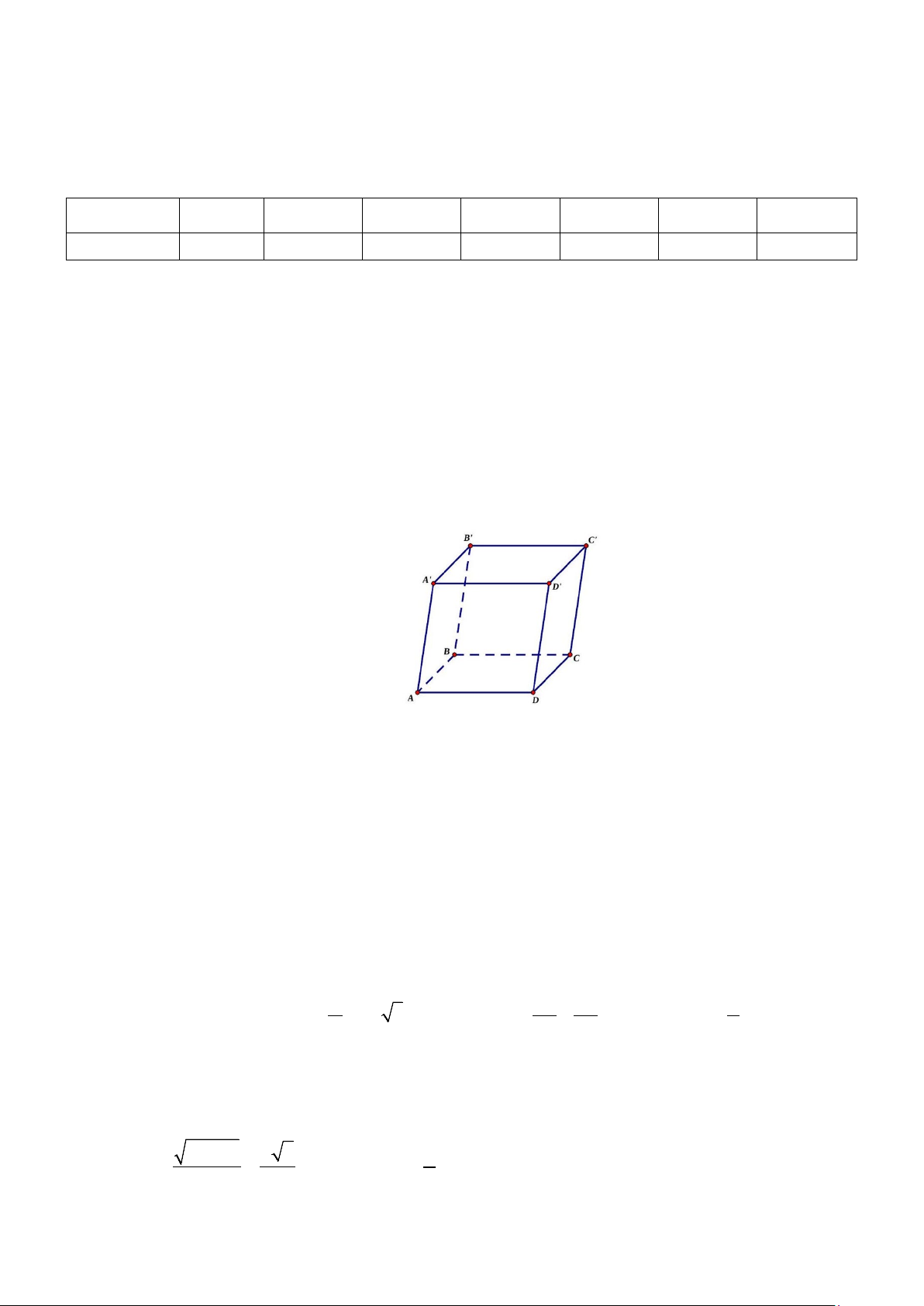 Câu 4: Cho hình hộp ABC .