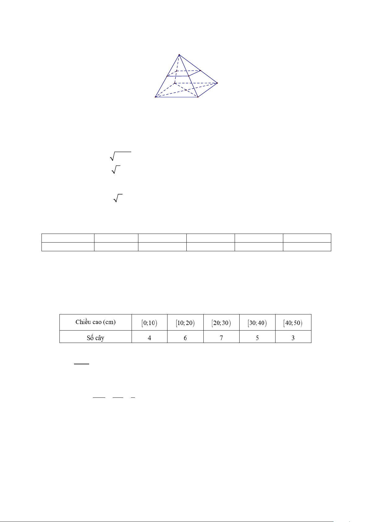 Câu 1: Cho mẫu số liệu ghép nhóm về chiều cao của 25 cây dừa giống như sau: