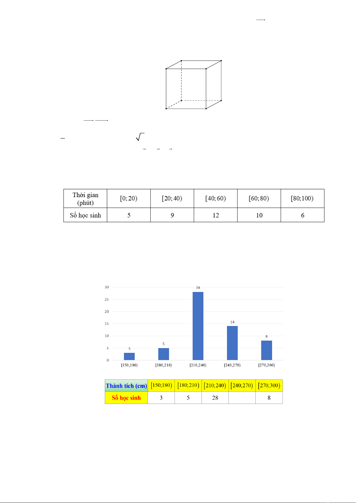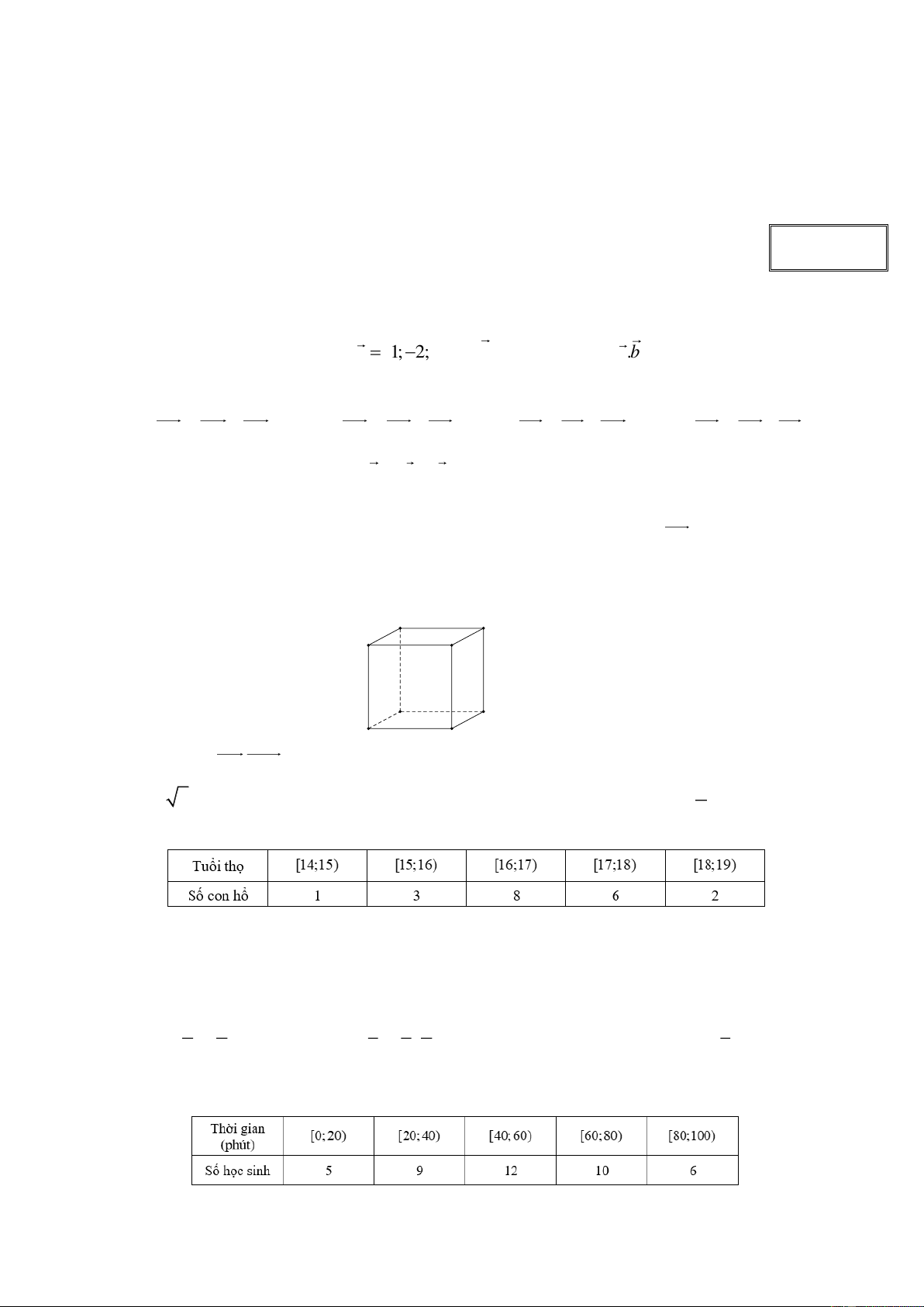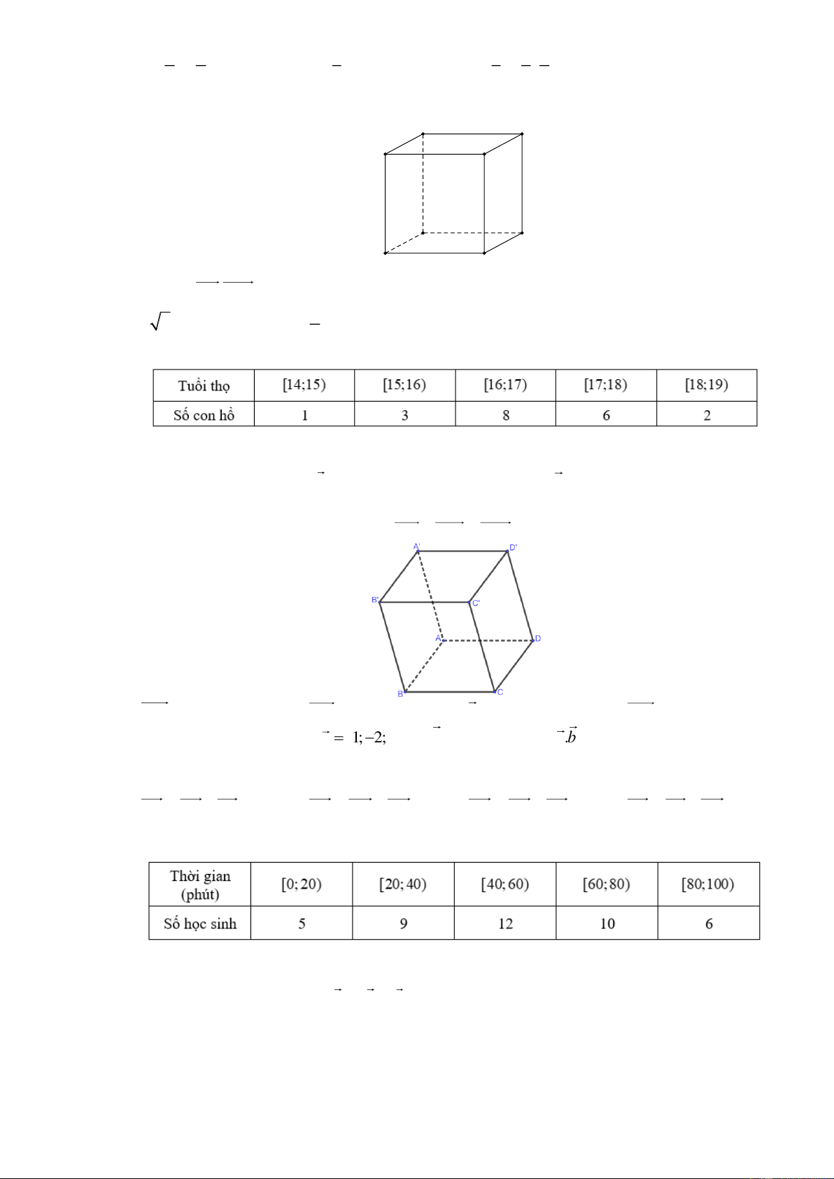 Nhóm chứa tứ phân vị thứ nhất là A. [40; 60) . B. [20; 40) . C. [0; 20) . D. [60;80) Câu 9. Cho hình hộp ABC . D A B C D