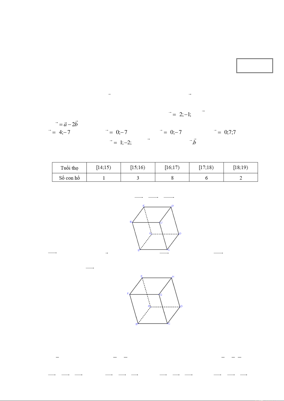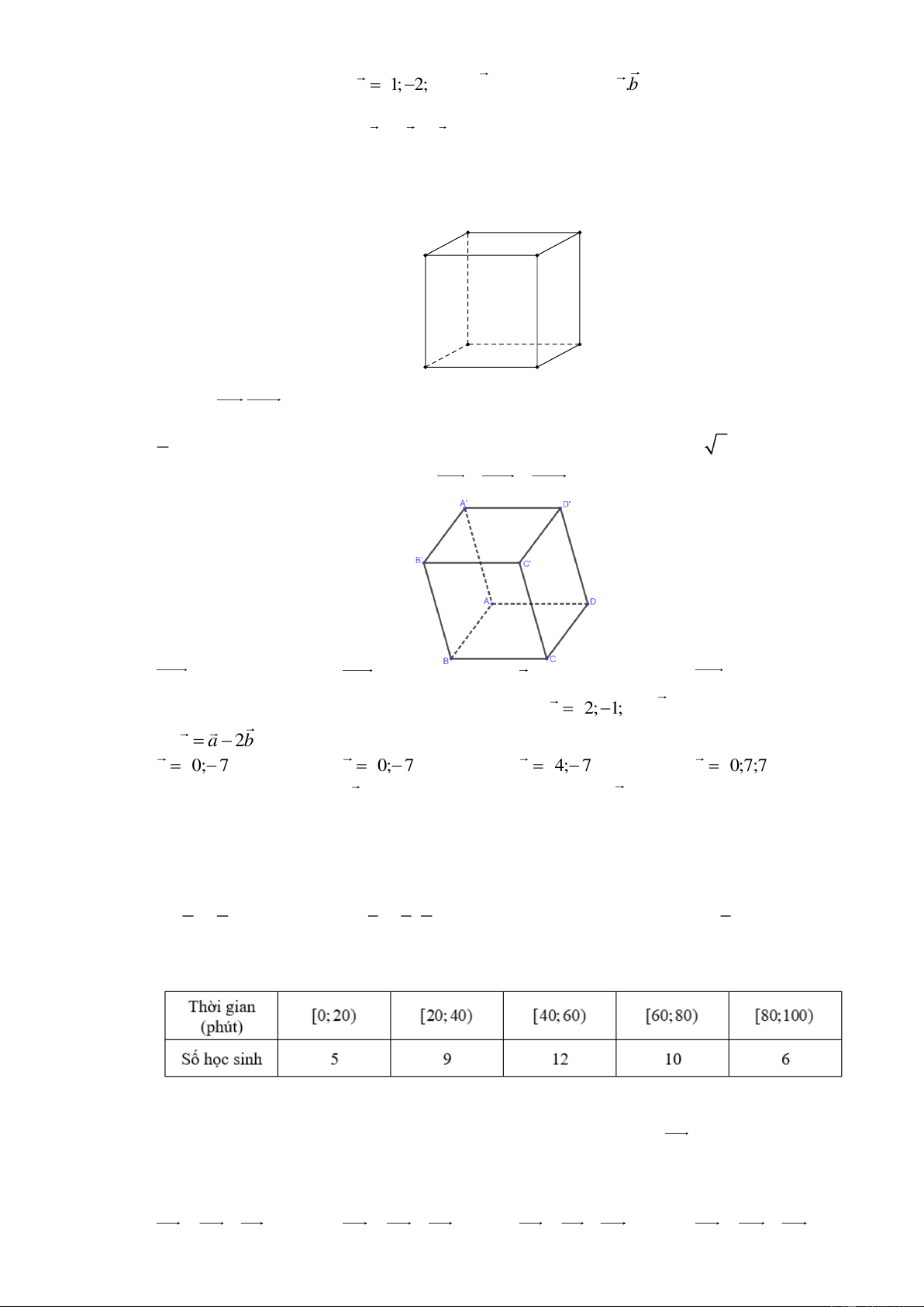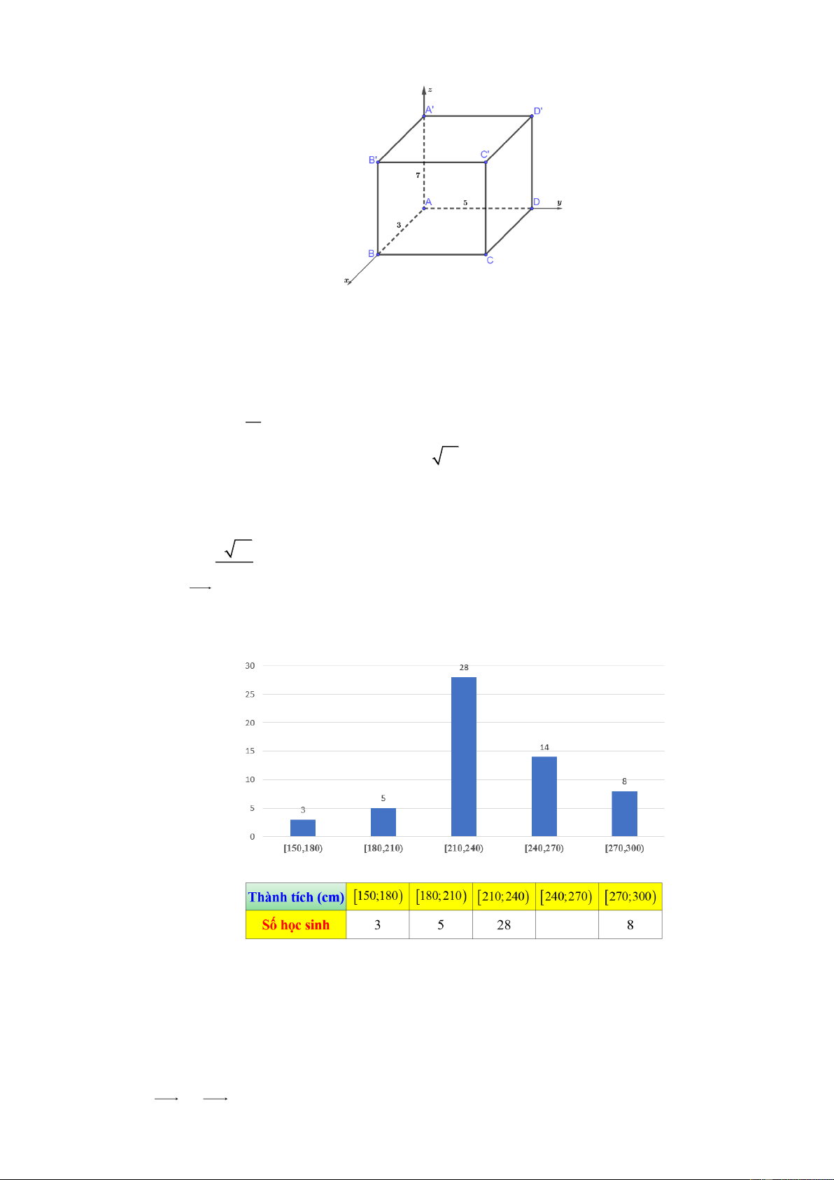 Nhóm chứa tứ phân vị thứ nhất là A. [40; 60) . B. [20; 40) . C. [0; 20) . D. [60;80) Câu 9. Cho hình hộp ABC . D A B C D