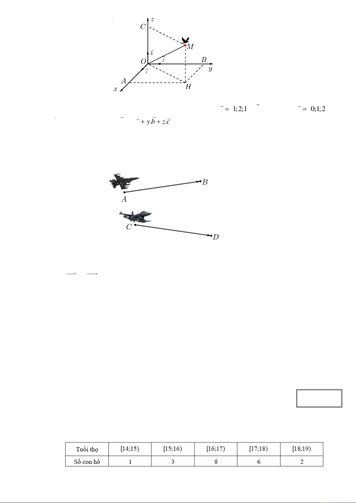 Một chú chim bồ câu đang ở vị trí M trong không gian Oxyz như hình sau. Gọi H là hình chiếu