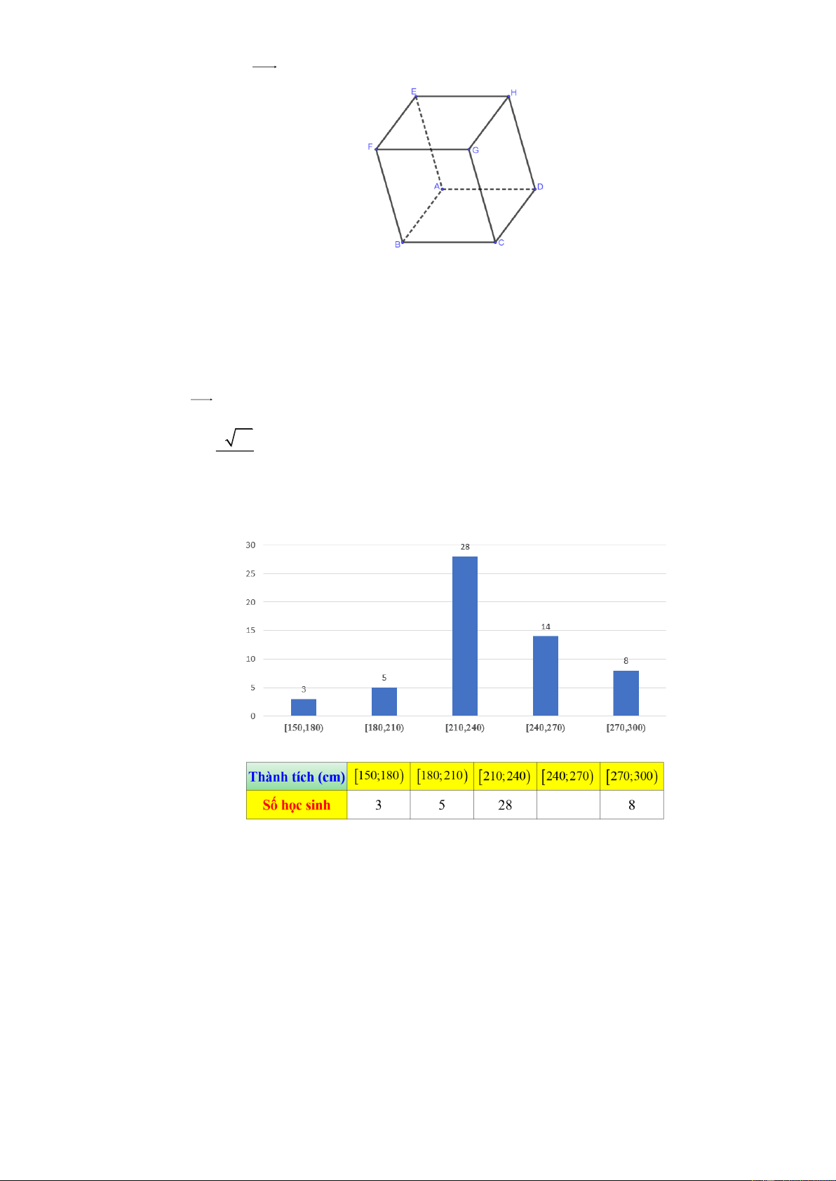 d) Khoảng tứ phân vị của mẫu số liệu ghép nhóm cho bởi biểu đồ trên là 40 (cm). Câu 2.