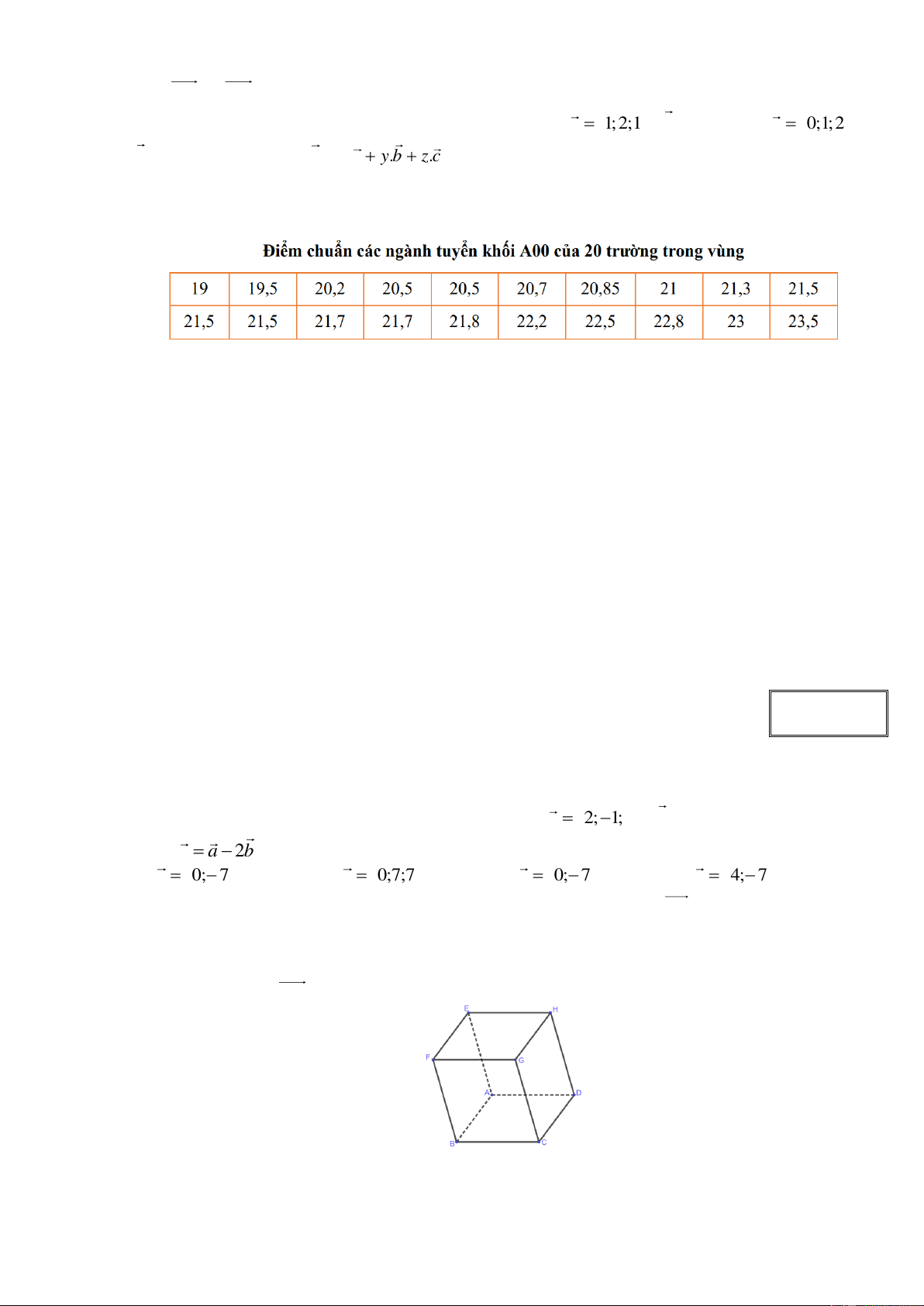 ;3 và b 3;0;4. Tính a.b . A. 9. B. 5. C. 15. D. 36. Câu 2. Cho 4 điểm bất kì ,