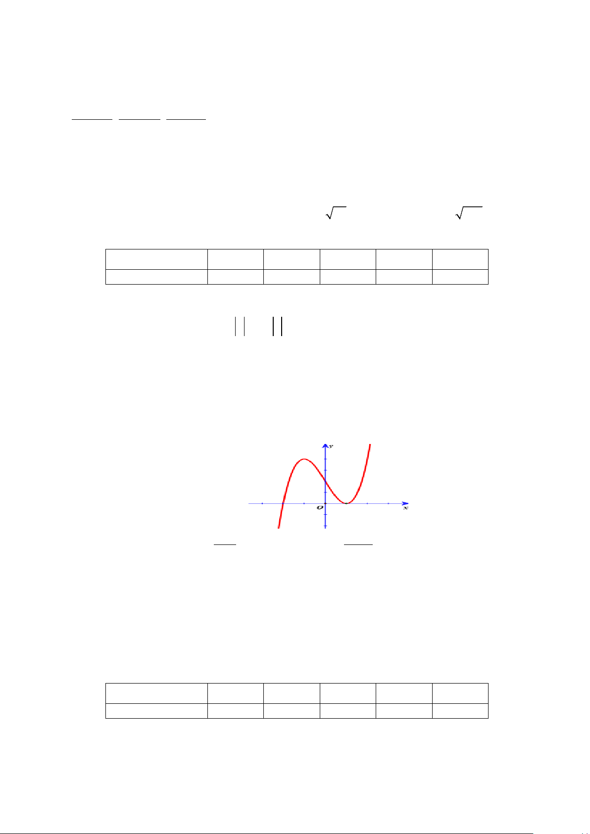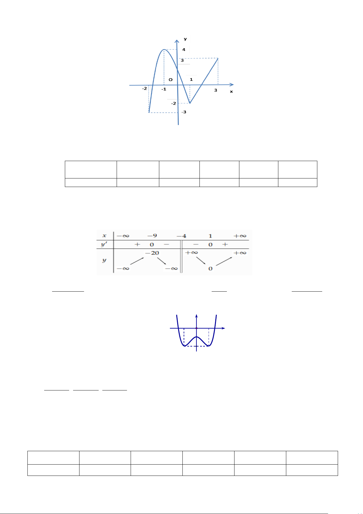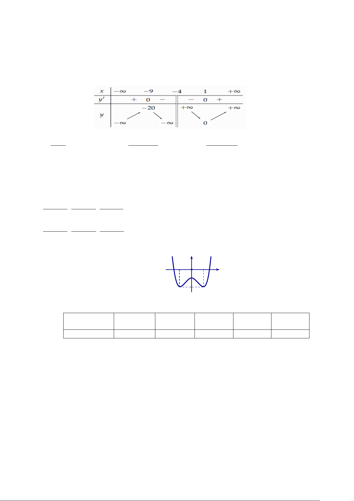 Câu 22. Bảng biến thiên trong hình dưới là đồ thị của một hàm số trong bốn hàm số được liệt kê ở bốn