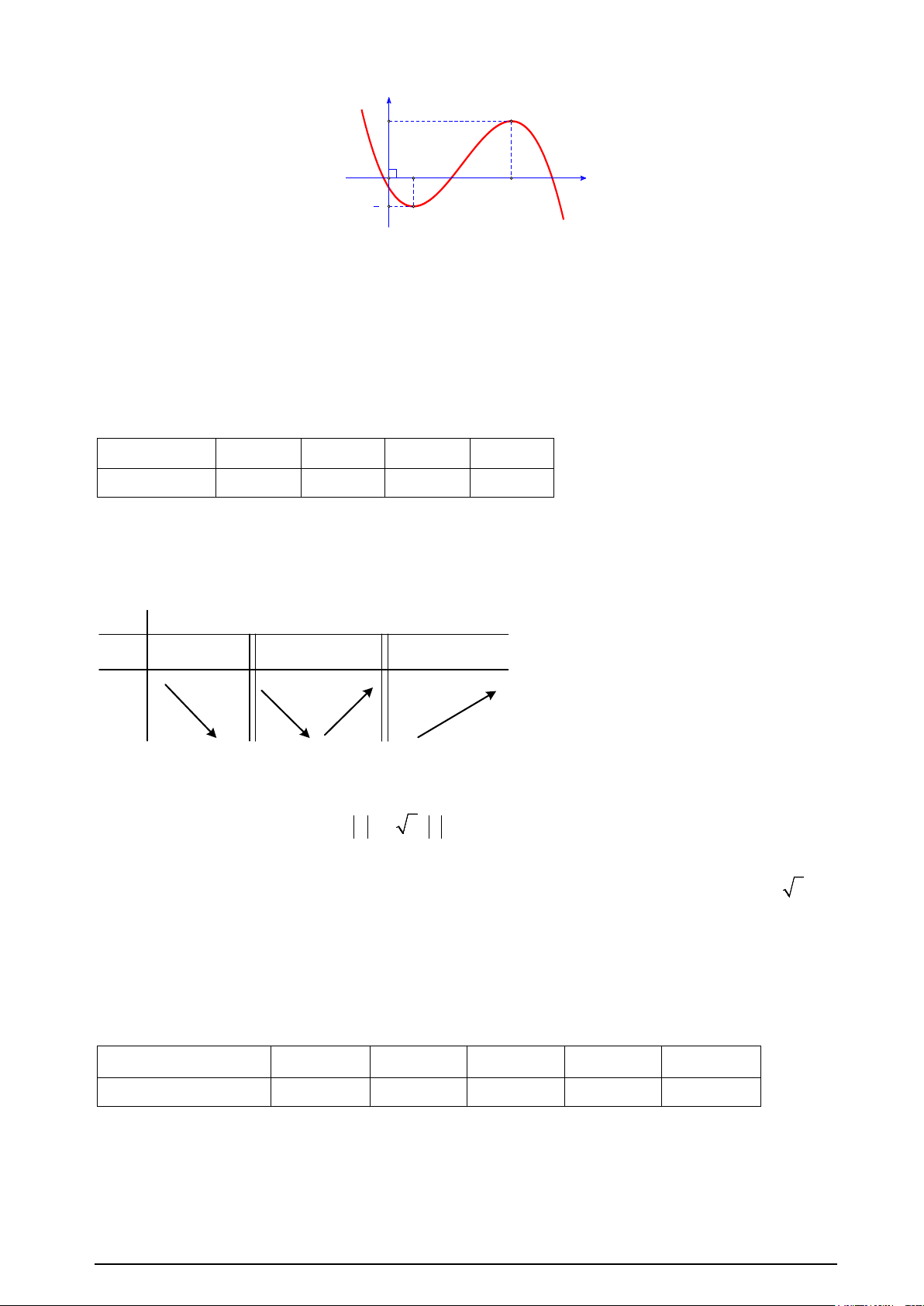 f x = ax + bx + cx + d  có đồ thị như hình vẽ. Giá trị cực tiểu của hàm số f (x)  bằng  y 2 1 x O 5 1   Mã đề 122  Trang 1/5   A. 5.   B. −1.   C. 1.   D. 2.