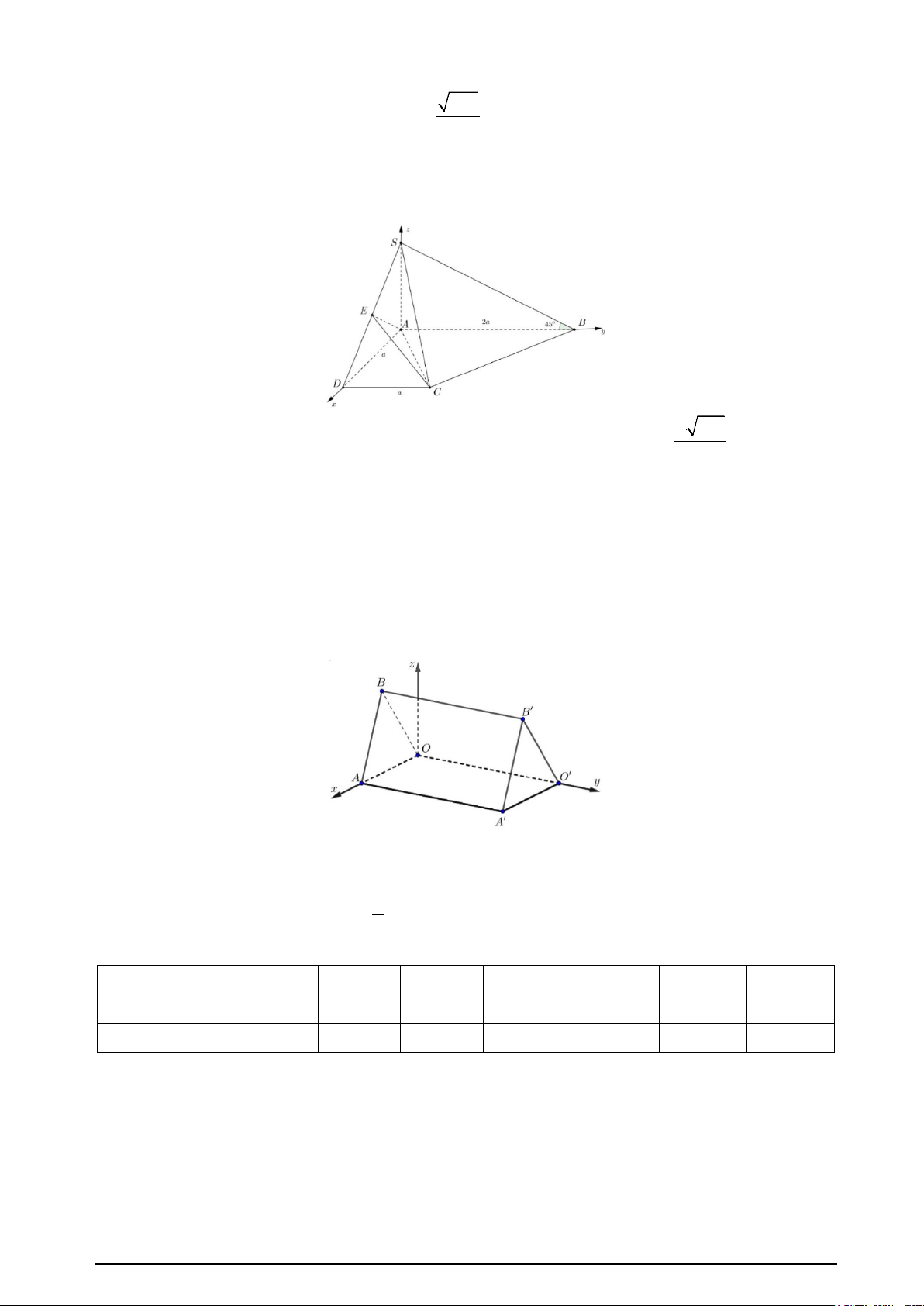 Câu 6. Trong không gian với hệ tọa độ Oxyz , cho hình thang ABCD  có hai đáy AB, CD , tọa độ  ba đỉnh A(1;2; ) 1 , B(  2;0;− ) 1 , C (