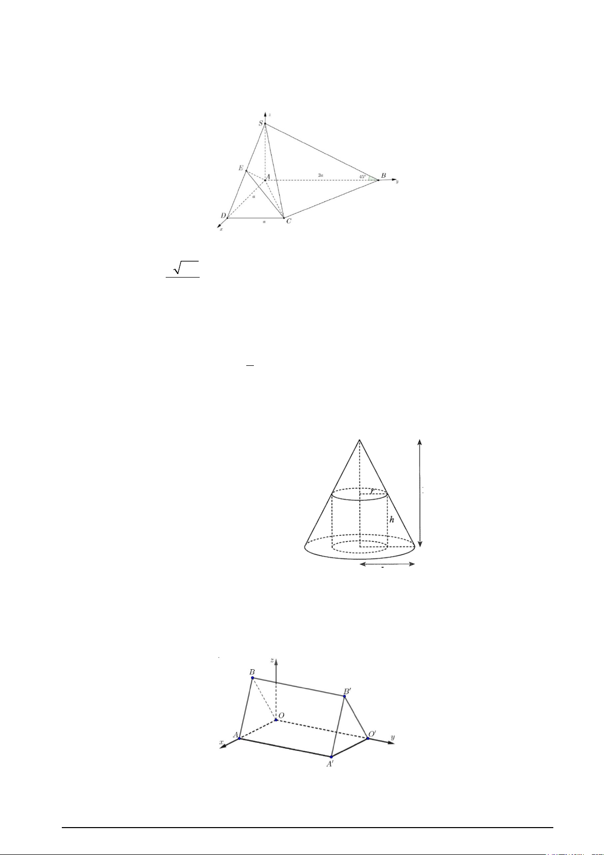 Câu 2. Hình bên cho biết một hình trụ có bán kính đáy r (cm) , chiều cao h(cm) nội tiếp hình nón có