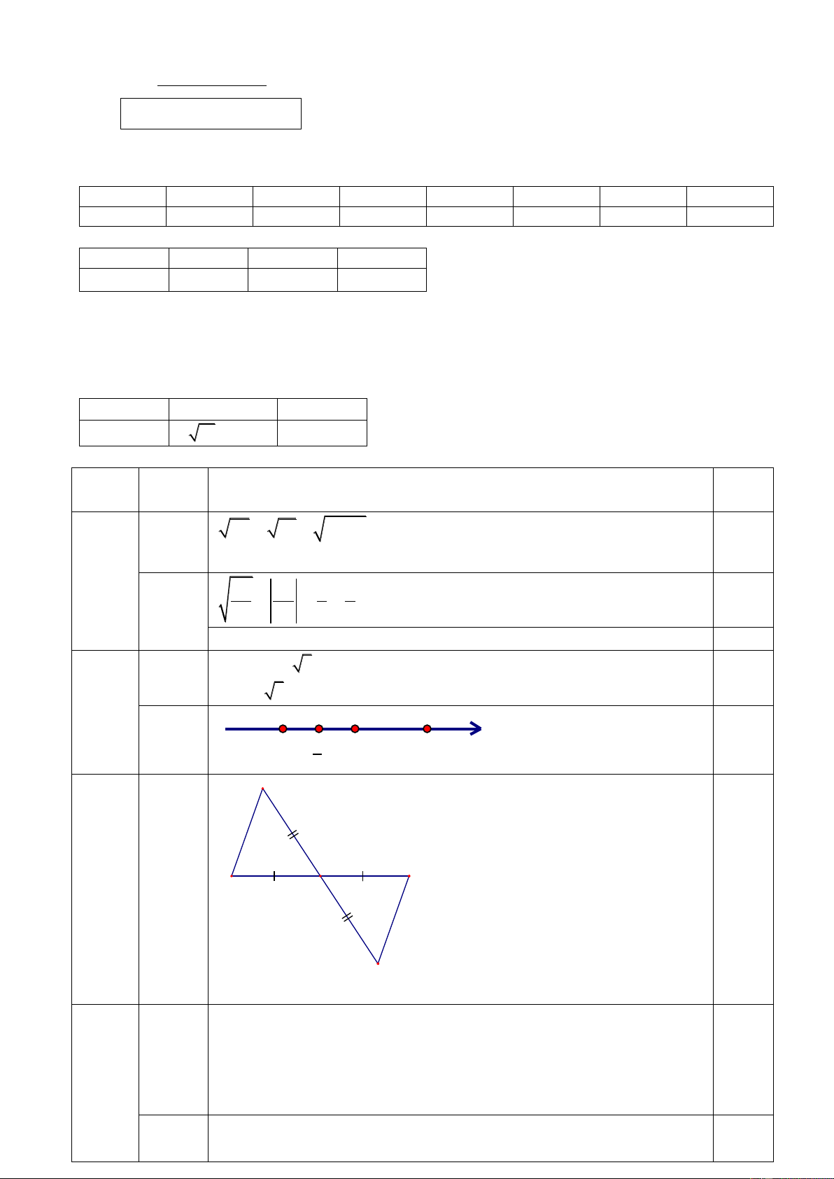 Tính được 5 2, 23 ... 0,25 Do đó 5 2,36 0,25 b -1 0 1 0,25 13 1 (1,0) - 2 0,25 14 B (3,0) O C A D