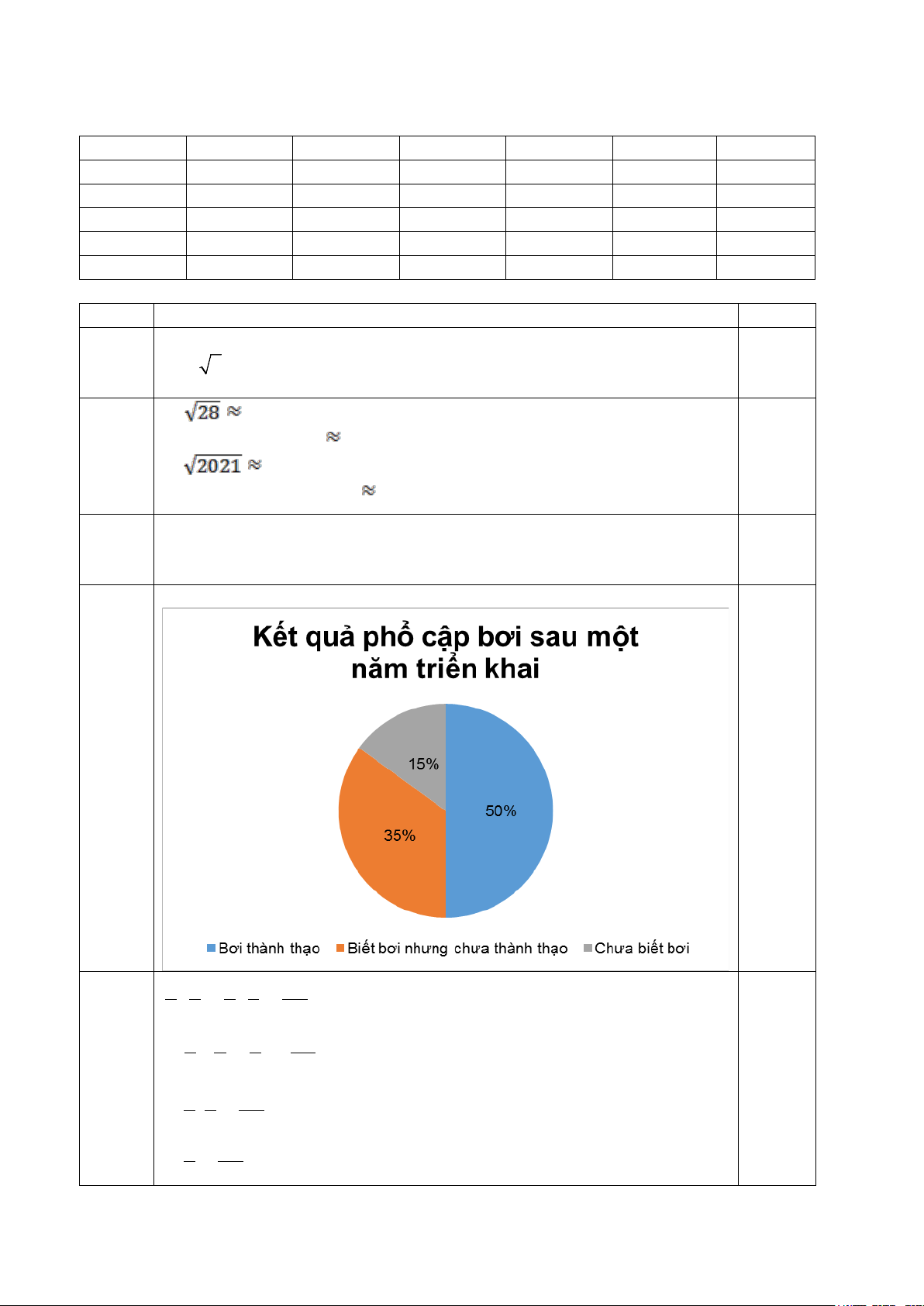 Bài 4. (0,75 điểm) Sau một năm thực hiện đề án phổ cập bơi, B C