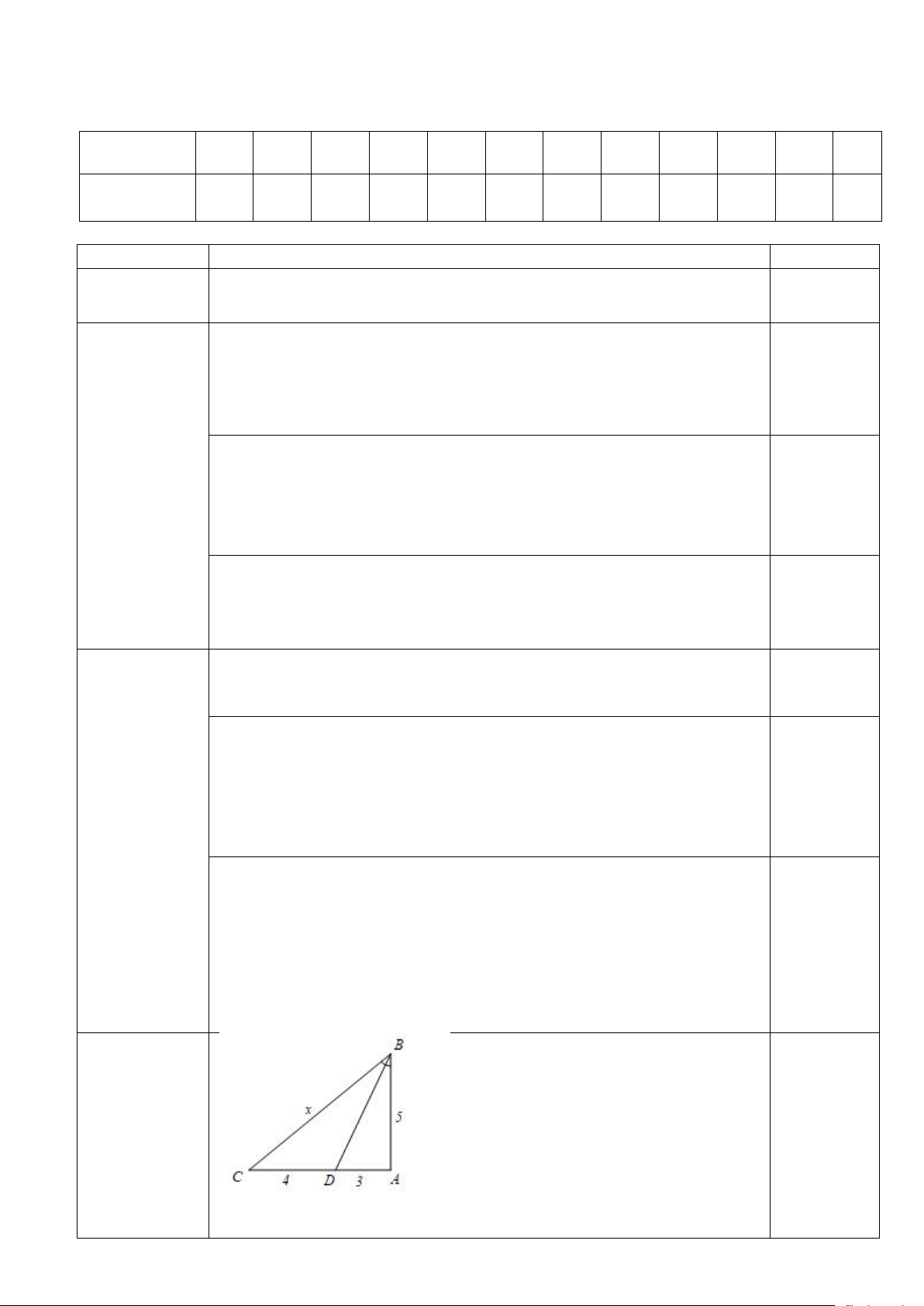 ΔABC có BD là đường phân giác góc B 0,25 Nên CD DA 0,25 = CB AB 4 3 0,25 = x 5 3.x = 4.5 20 x = . 3